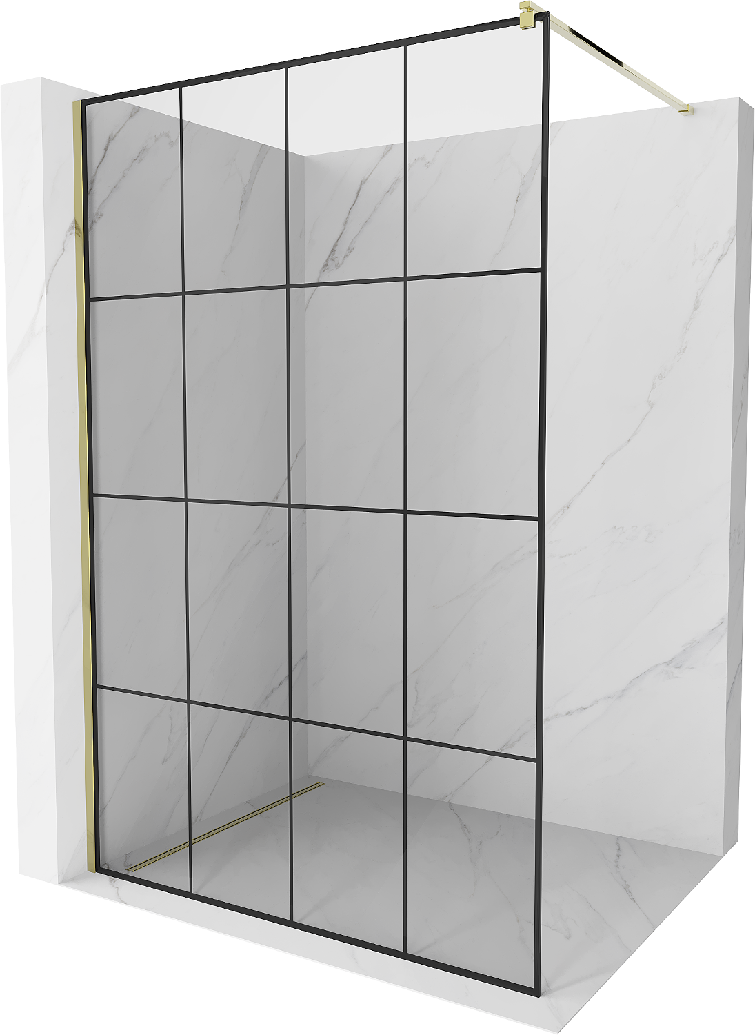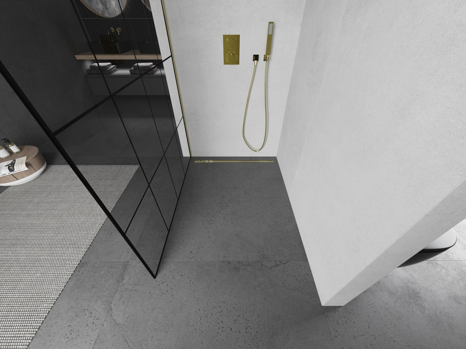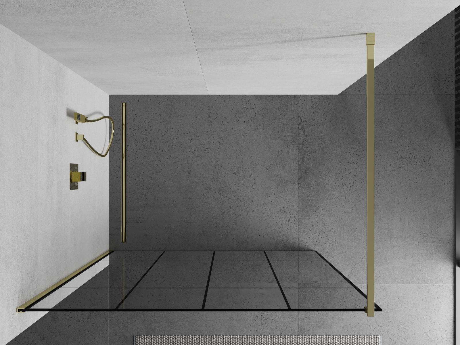 Mexen Kioto paroi de douche Walk-in 140 x 200 cm, grille noire 8 mm, dorée - 800-140-101-50-77