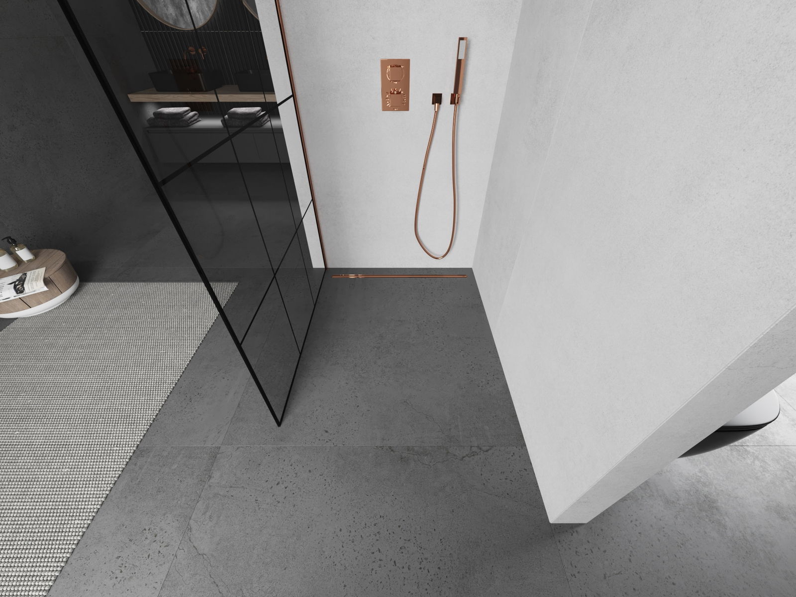 Mexen Kioto paroi de douche Walk-in 110 x 200 cm, grille noire 8 mm, or rose - 800-110-101-60-77