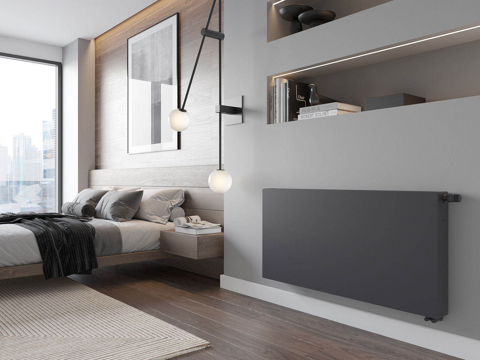 Mexen CVF22 Flat radiateur à panneau 300 x 1400 mm, connexion par le bas, 1261 W, anthracite - W622F-030-140-66