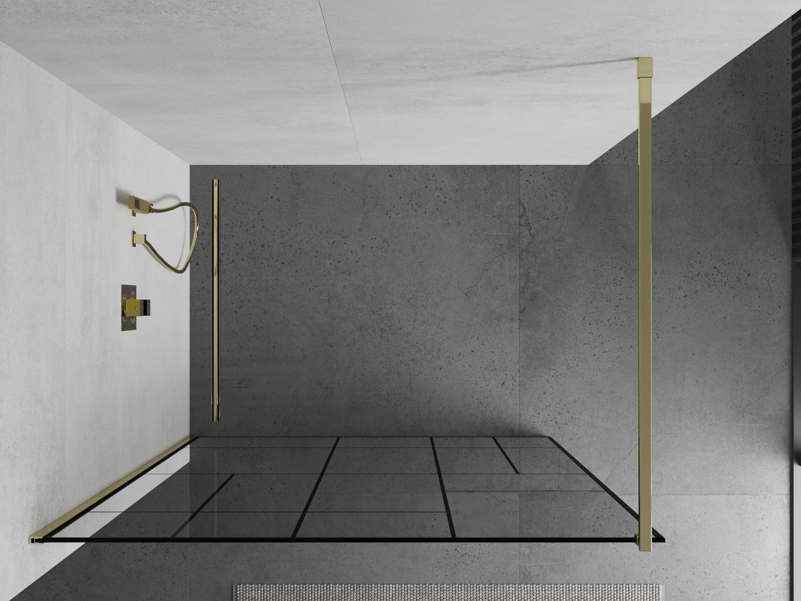 Mexen Kioto paroi de douche Walk-in 110 x 200 cm, motif noir 8 mm, doré - 800-110-101-50-78