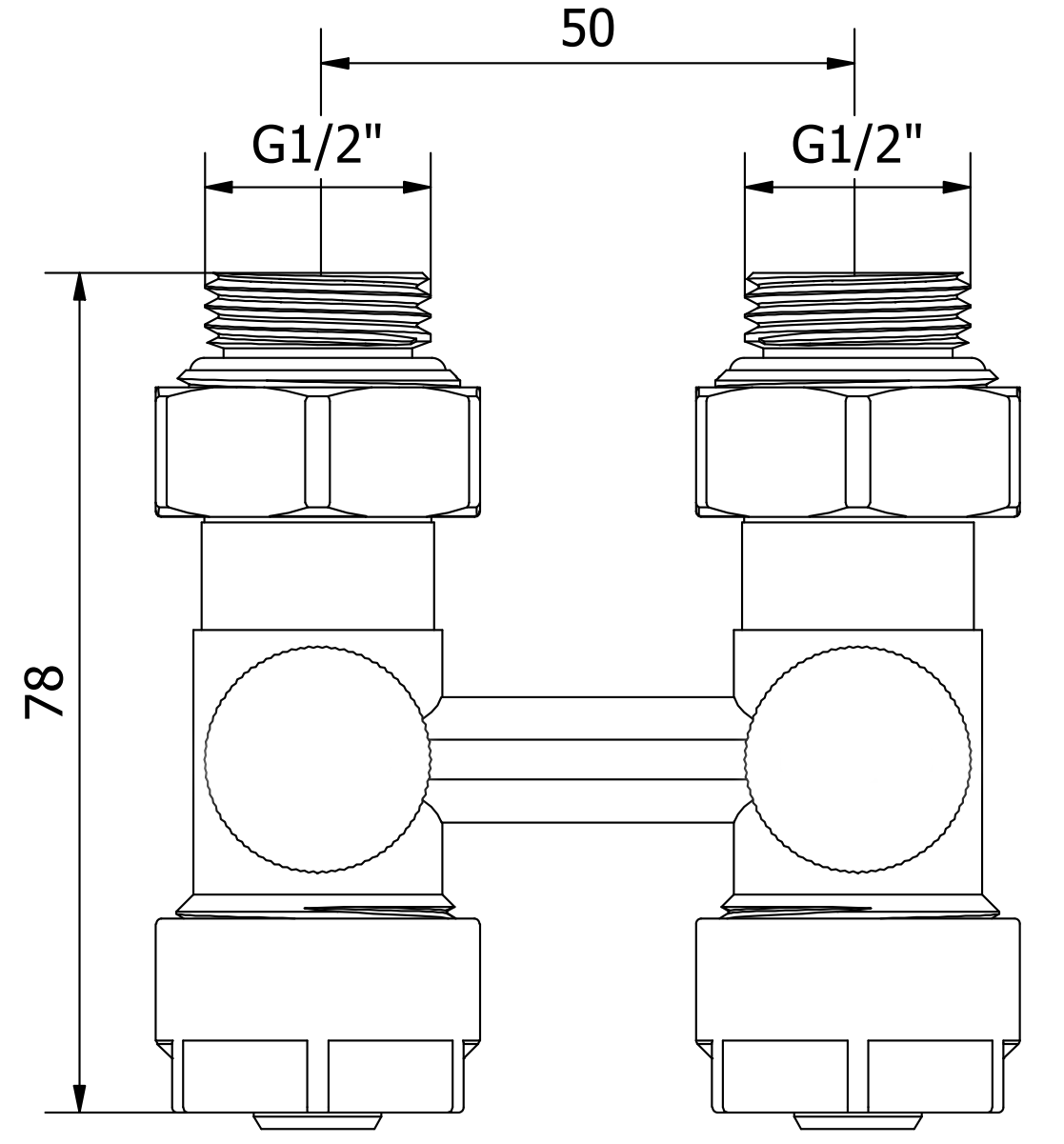 Raccord inférieur avec un écartement de 50 mm