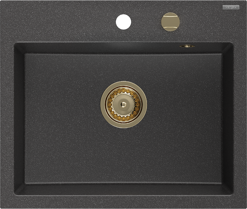 Mexen Oscar évier en granit à 1 bac 580 x 490 mm, noir moucheté, siphon doré - 6519581000-76-G