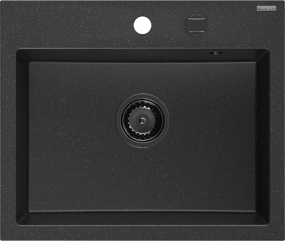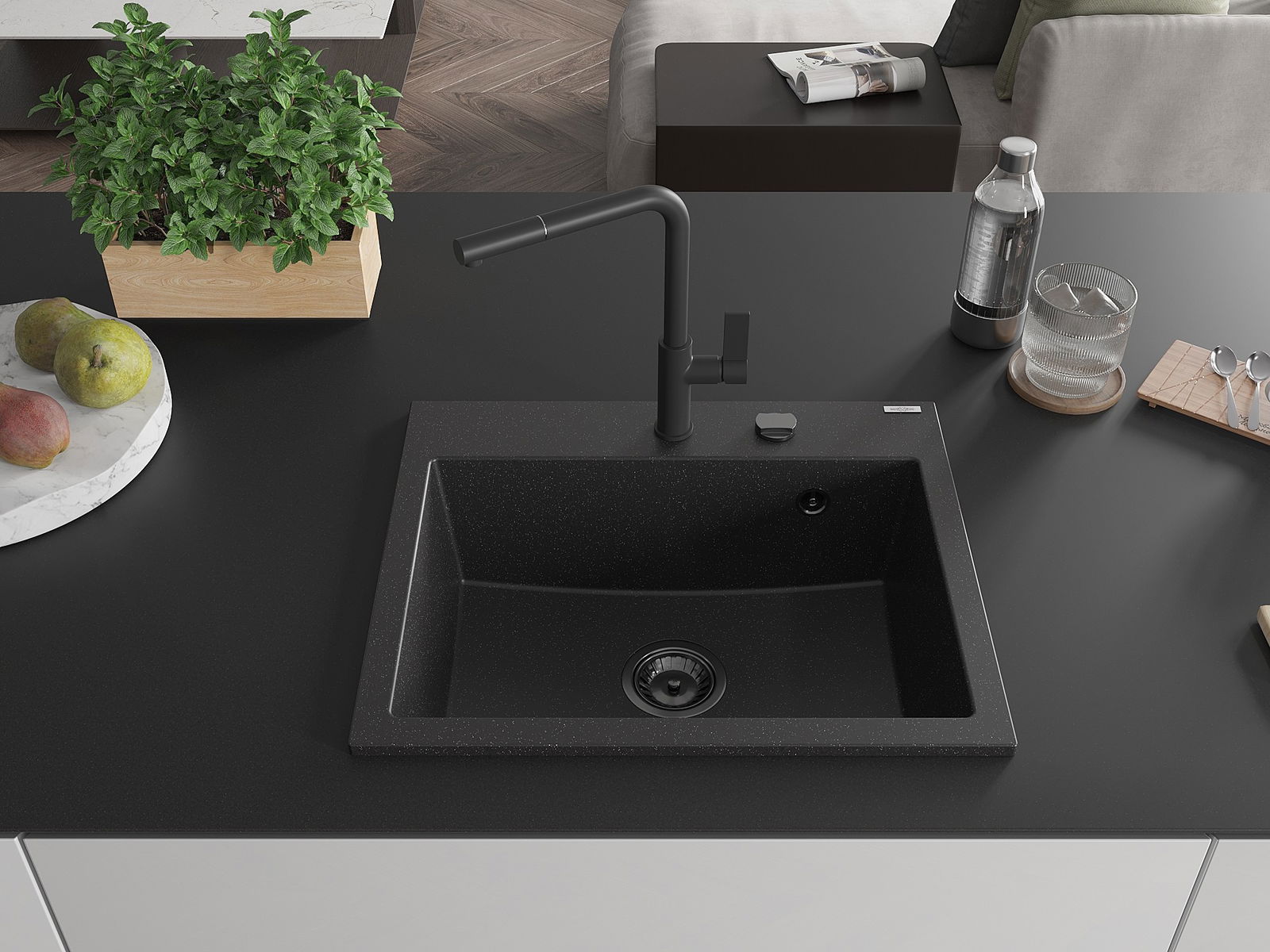 Mexen Oscar évier en granit 1 bac 580 x 490 mm, noir/métallique argent, siphon noir - 6519581000-73-B