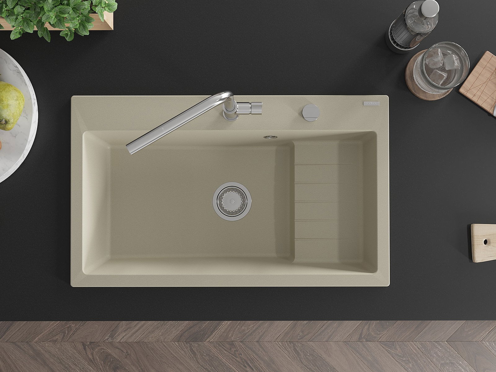 Mexen Omar évier en granit 1 bac 800 x 480 mm, beige, siphon chromé - 6520801005-69