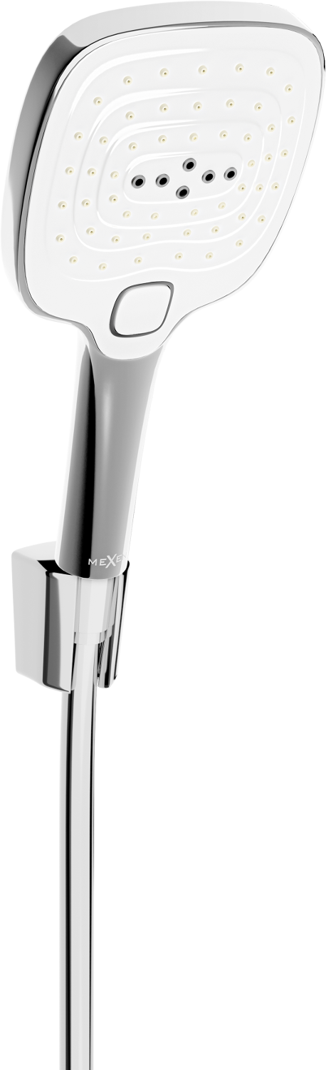 Le pommeau de douche propose trois types de jets, réglables par interrupteur. Il offre une liberté totale et la possibilité de s'adapter aux besoins de l'utilisateur, offrant un jet d'eau délicat ou plus puissant et concentré.