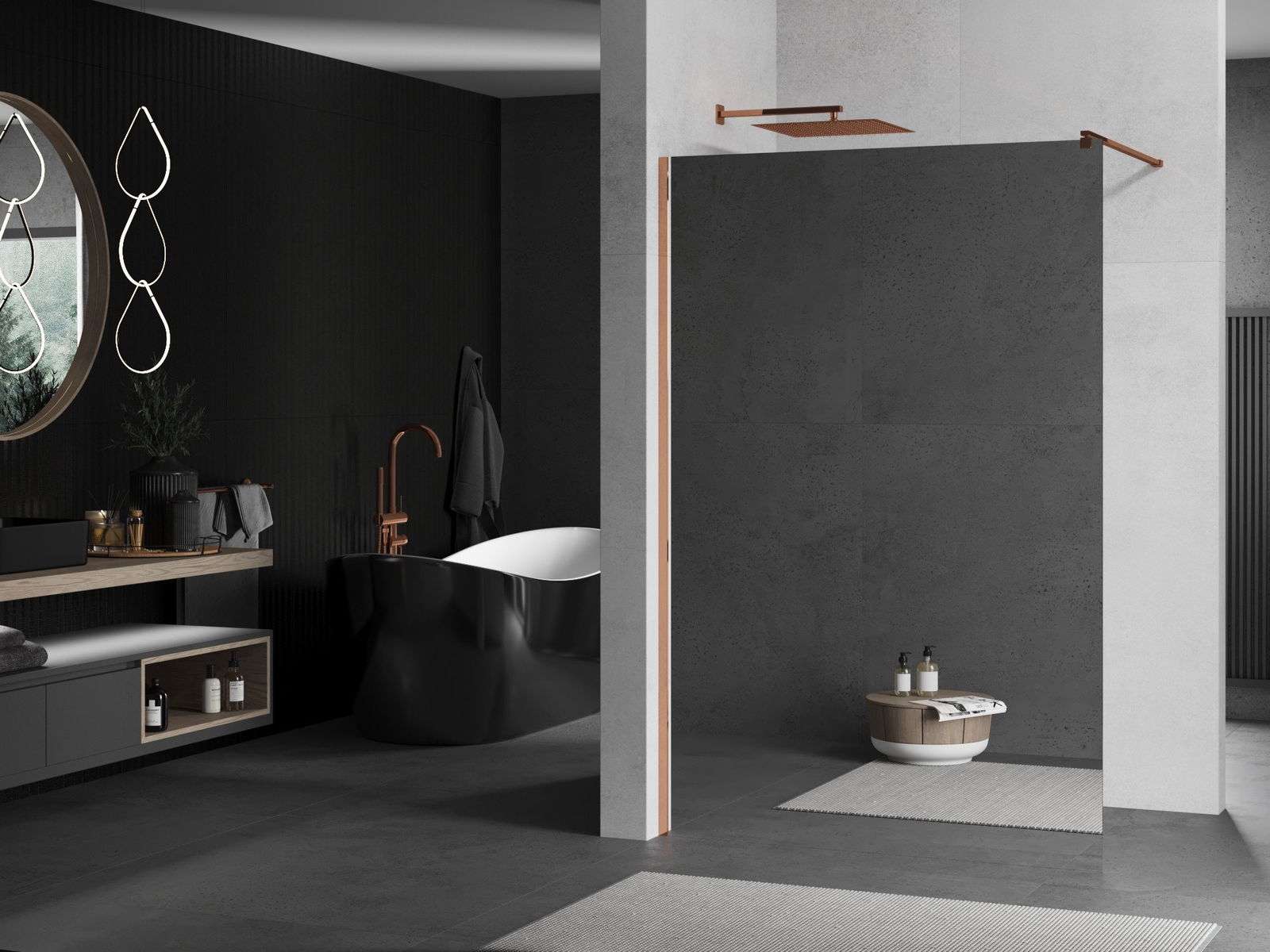 Mexen Kioto panneau de douche Walk-in 140 x 200 cm, miroir 8 mm, or rose - 800-140-101-60-50