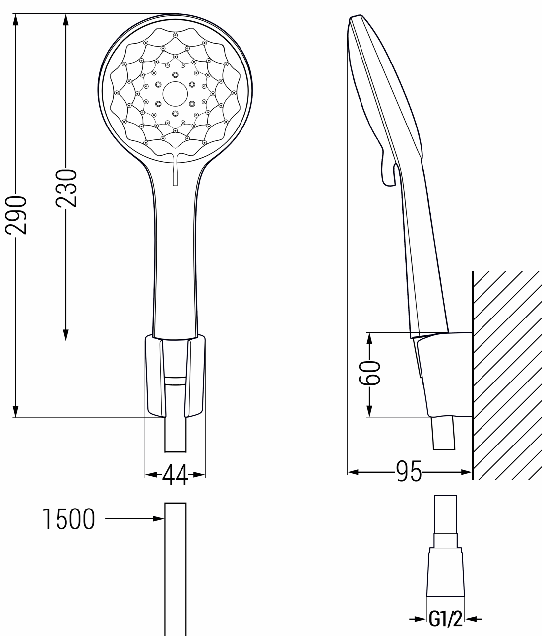 Jet d'eau standard imitant la pluie naturelle. Les gouttes s'écoulent uniformément sur le corps, l'enveloppant d'une agréable sensation d'hydratation et vous permettant de vous immerger dans une expérience relaxante et apaisante pendant votre bain quotidien.