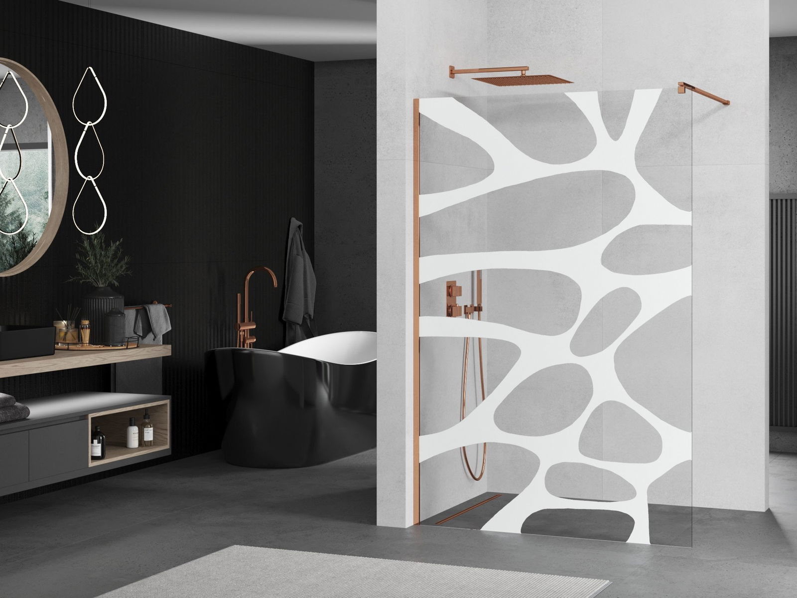Mexen Kioto paroi de douche Walk-in 140 x 200 cm, vague blanche 8 mm, or rose - 800-140-101-60-97