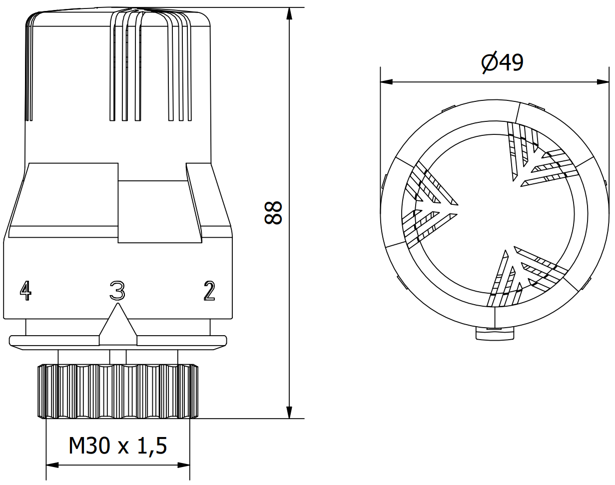 C'est une taille standard de filetage utilisée dans de nombreuses têtes thermostatiques, en particulier dans les appareils utilisés dans les installations de chauffage. Le symbole M30 signifie que le diamètre extérieur du filetage est de 30 mm, et 1,5 mm - le pas du filetage est de 1,5 mm.