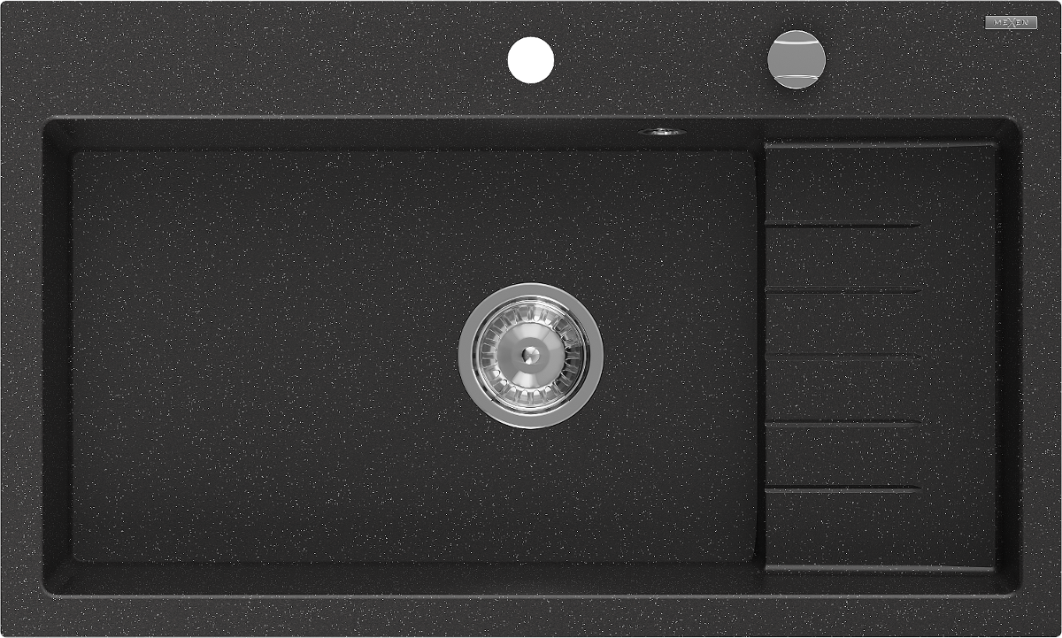 Mexen Omar évier en granit 1 bac 800 x 480 mm, noir/argent métallisé, siphon chromé - 6520801005-73