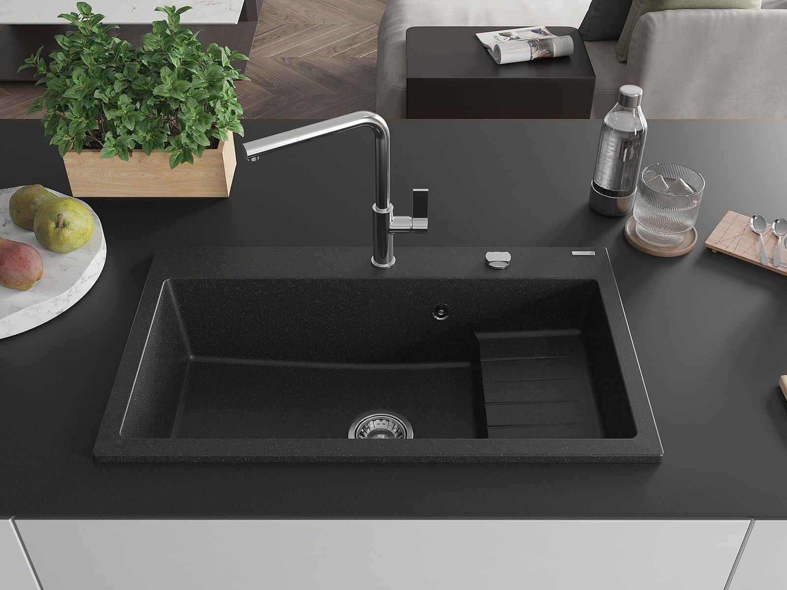 L'évier a été fabriqué en granit de haute qualité. Il constitue un complément élégant et surtout pratique pour chaque cuisine, quel que soit son style. La haute qualité et la durabilité du granit garantissent une utilisation de plusieurs années.