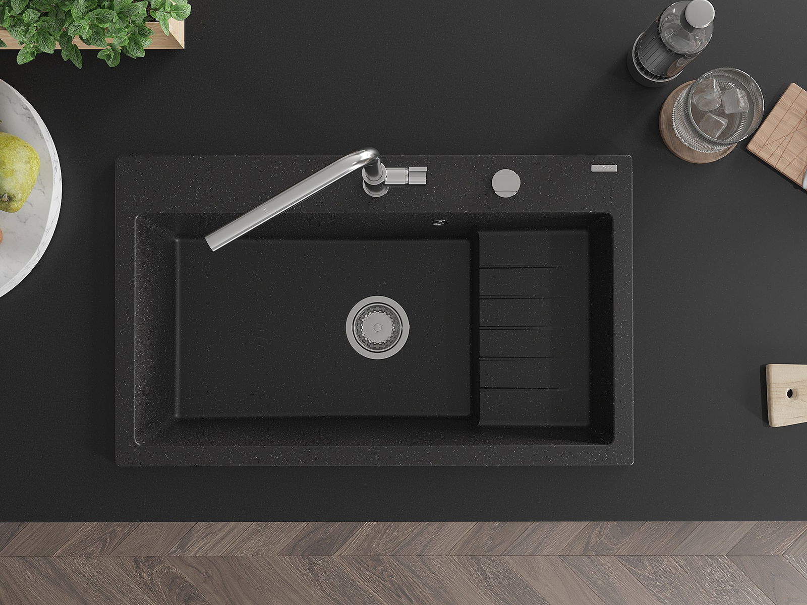 La surface de l'évier est très bien durcie, elle se distingue par une résistance exceptionnelle aux dommages mécaniques et aux rayures. Le matériau durable de fabrication permet de profiter de l'apparence de l'évier pendant de nombreuses années d'utilisation.