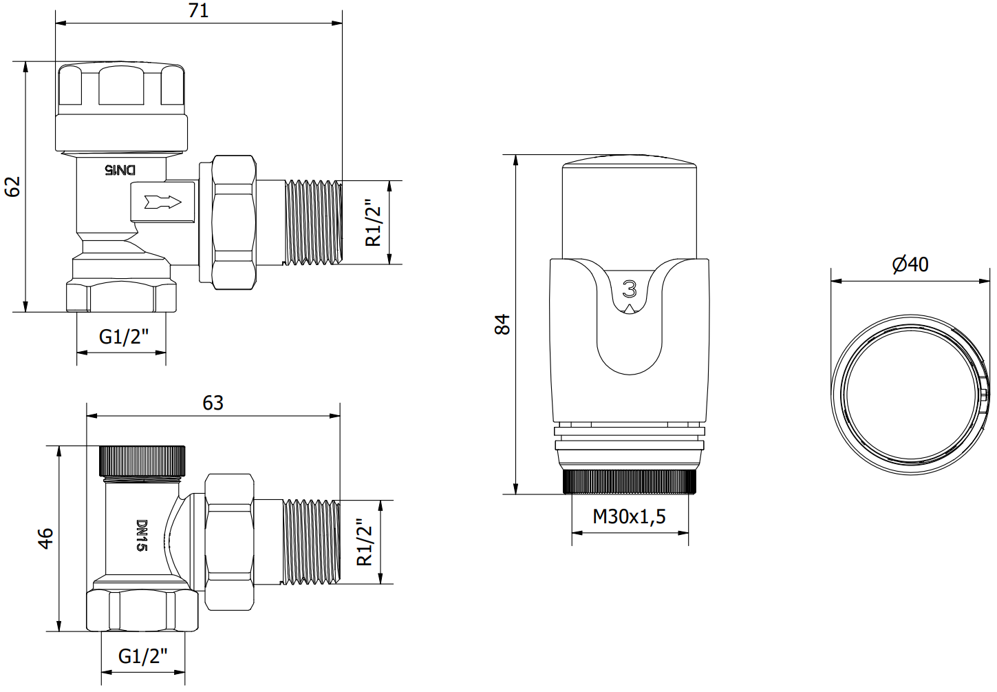Le kit comprend une vanne de radiateur d'alimentation et d'arrêt