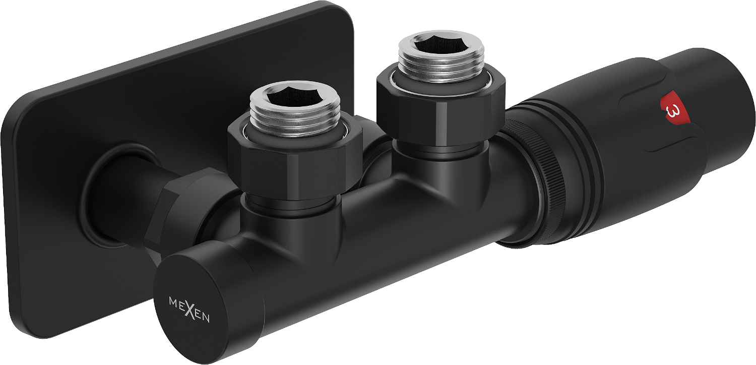L'ensemble thermostatique angulaire Mexen G00 avec cache S, Duplex, DN50, noir offre une qualité exceptionnelle grâce à sa fabrication en laiton robuste. Sa couleur anthracite élégante s'accorde aux intérieurs modernes. La vanne a un diamètre de raccord G 1/2" et une température de fonctionnement maximale de 120°C et une pression de service jusqu'à 10 bar. La connexion inférieure et la possibilité de réglage de la température de 0 à 29°C assurent une polyvalence. La protection contre le gel et la possibilité de connecter la tête des deux côtés augmentent la fonctionnalité.