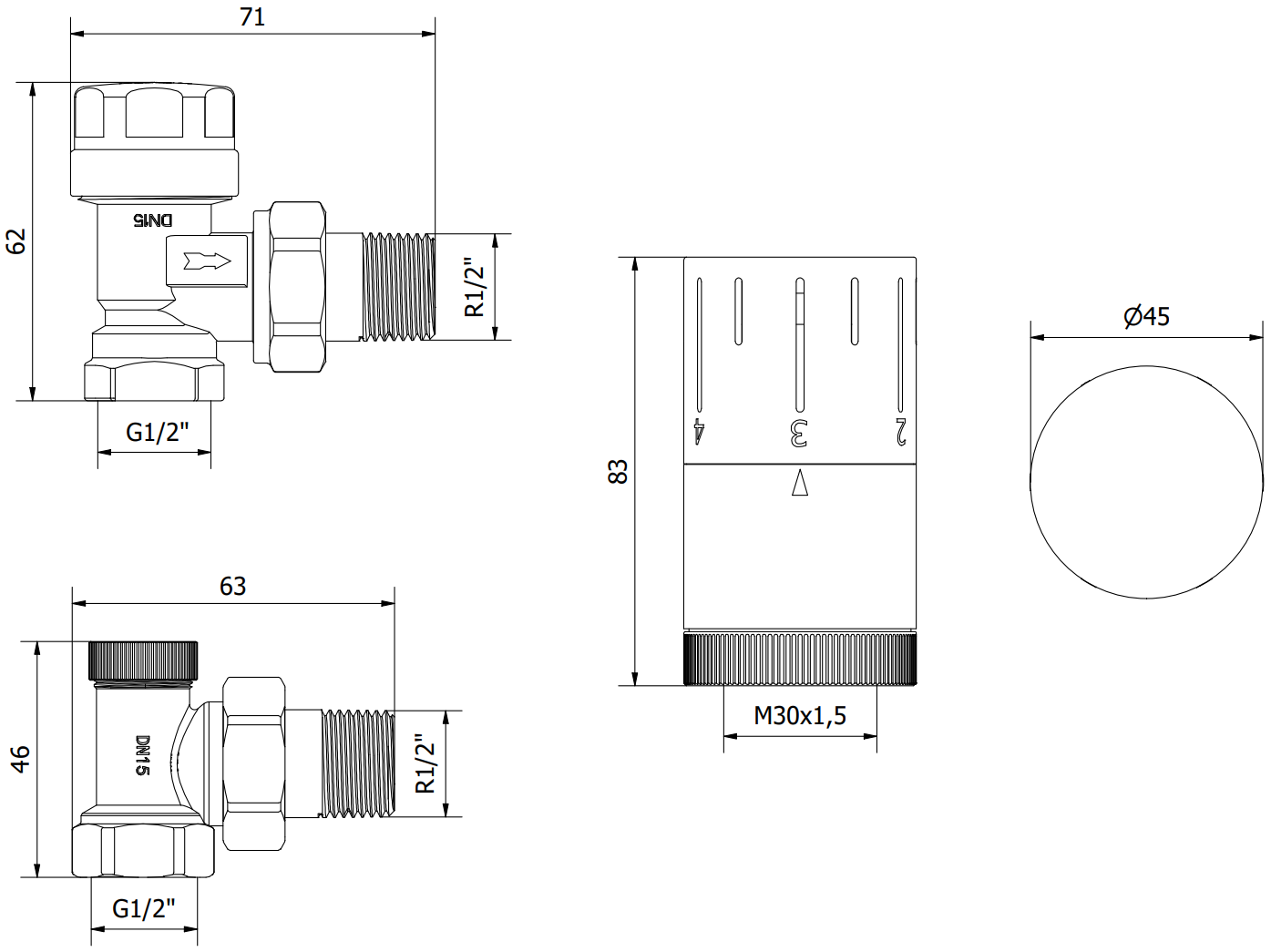 Comprend une vanne de radiateur d'alimentation et d'arrêt