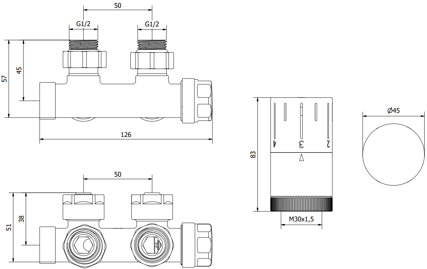 Possibilité de raccorder la tête à gauche ou à droite du valve