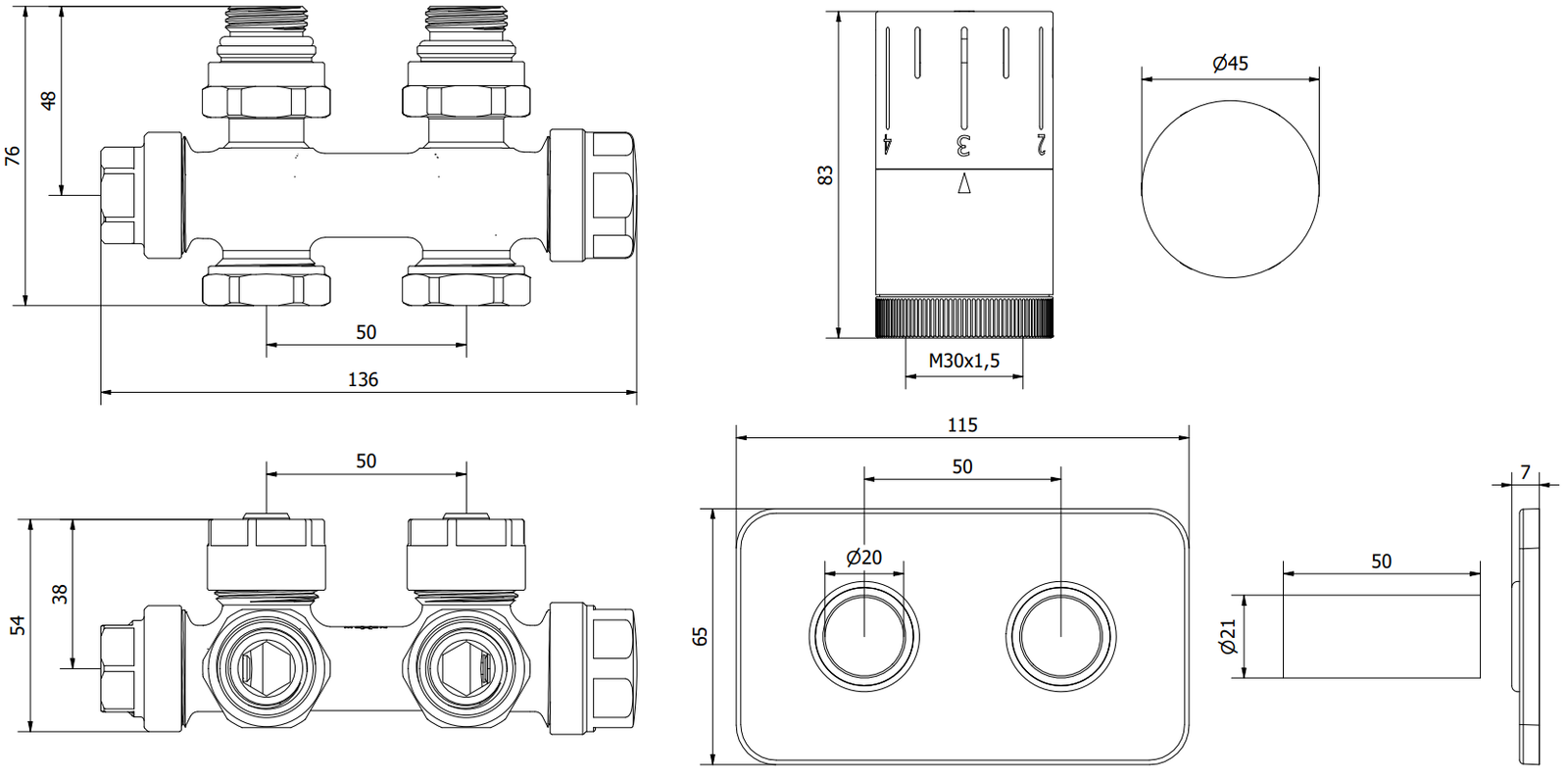 Ensemble avec rosette en acier inoxydable et manchon en laiton c’est une combinaison de deux matériaux aux propriétés exceptionnelles. L'acier inoxydable garantit une finition esthétique et résistance à la corrosion, tandis que le laiton assure durabilité et résistance lors de l'assemblage des éléments du système de chauffage.