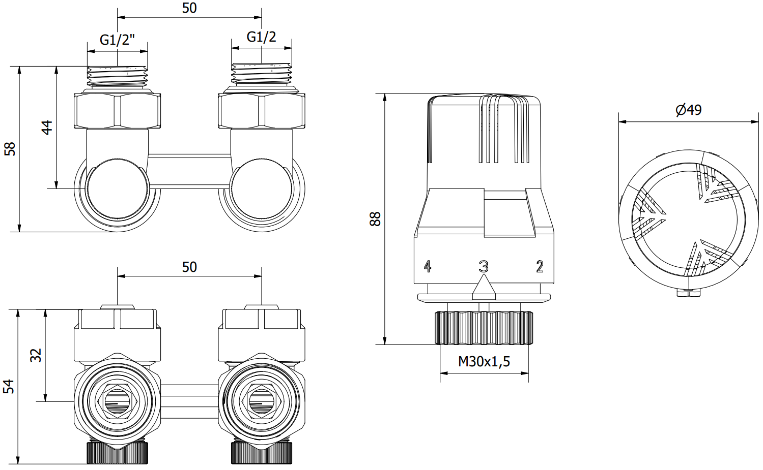 Diamètre du raccord : G 1/2" et pex 16x2 mm