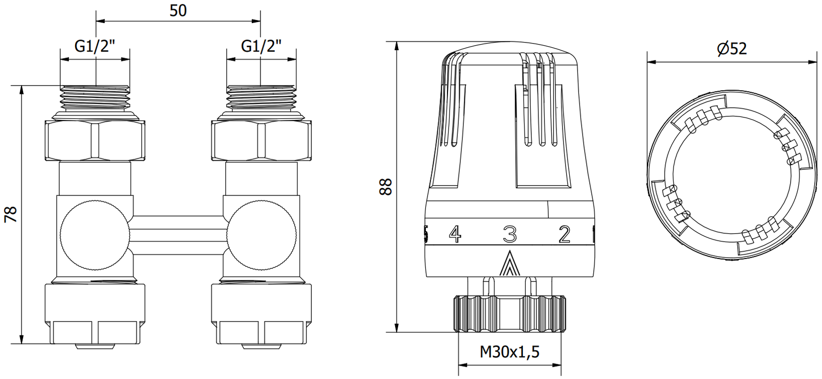 Diamètre de raccordement: G 1/2" et pex 16x2 mm