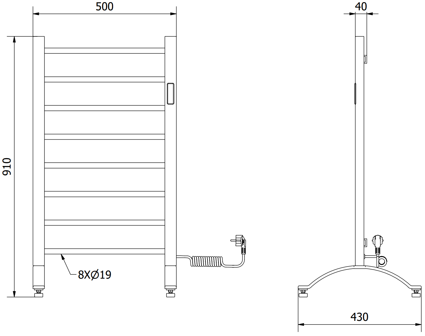 Hauteur : 910 mm