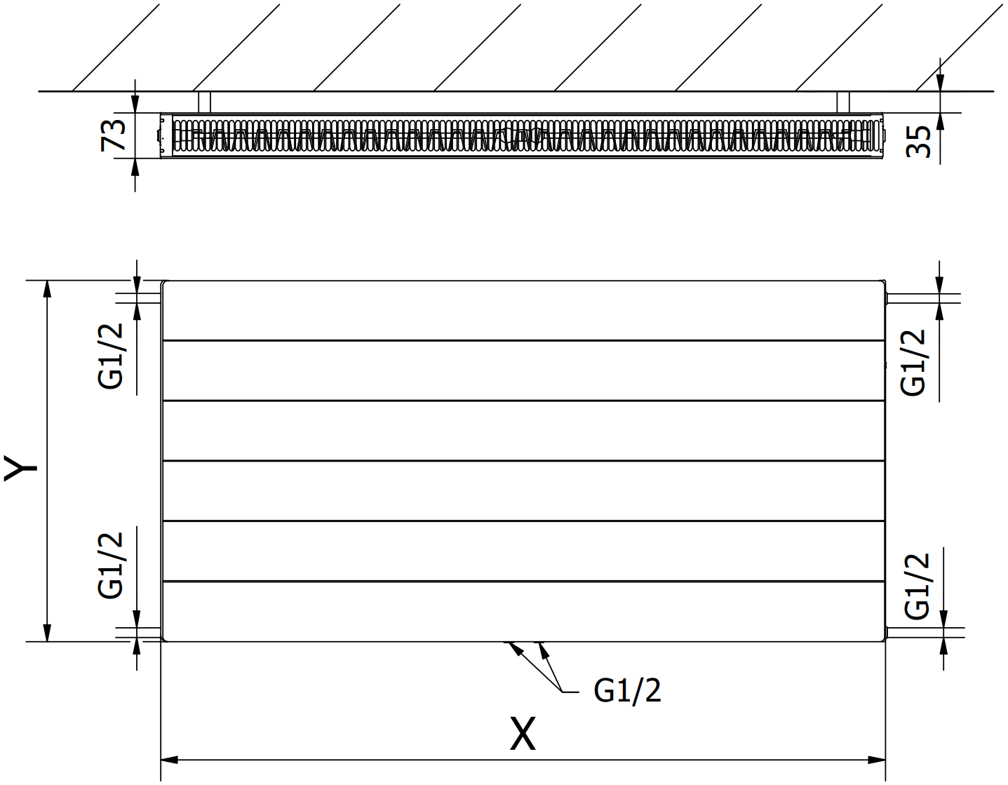 Les images montrent le radiateur en taille 600 x 1200 mm.