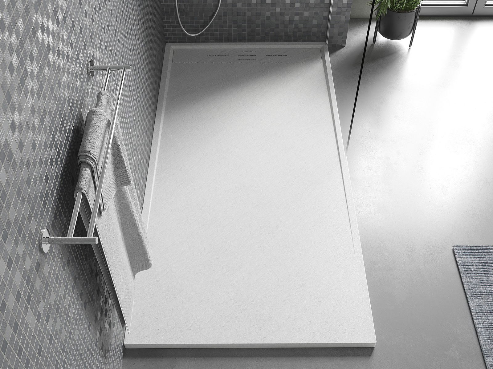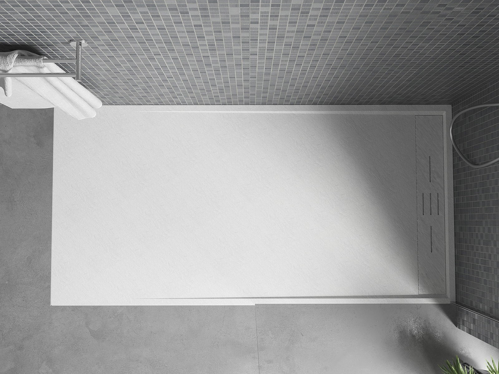La surface du receveur de douche rappelle par sa structure la pierre. Elle constitue une combinaison exceptionnelle d'un aspect naturel et d'un aménagement intérieur moderne. Elle ajoute du caractère, souligne l'esthétique et l'élégance de la décoration de la salle de bains et séduit par sa forme.