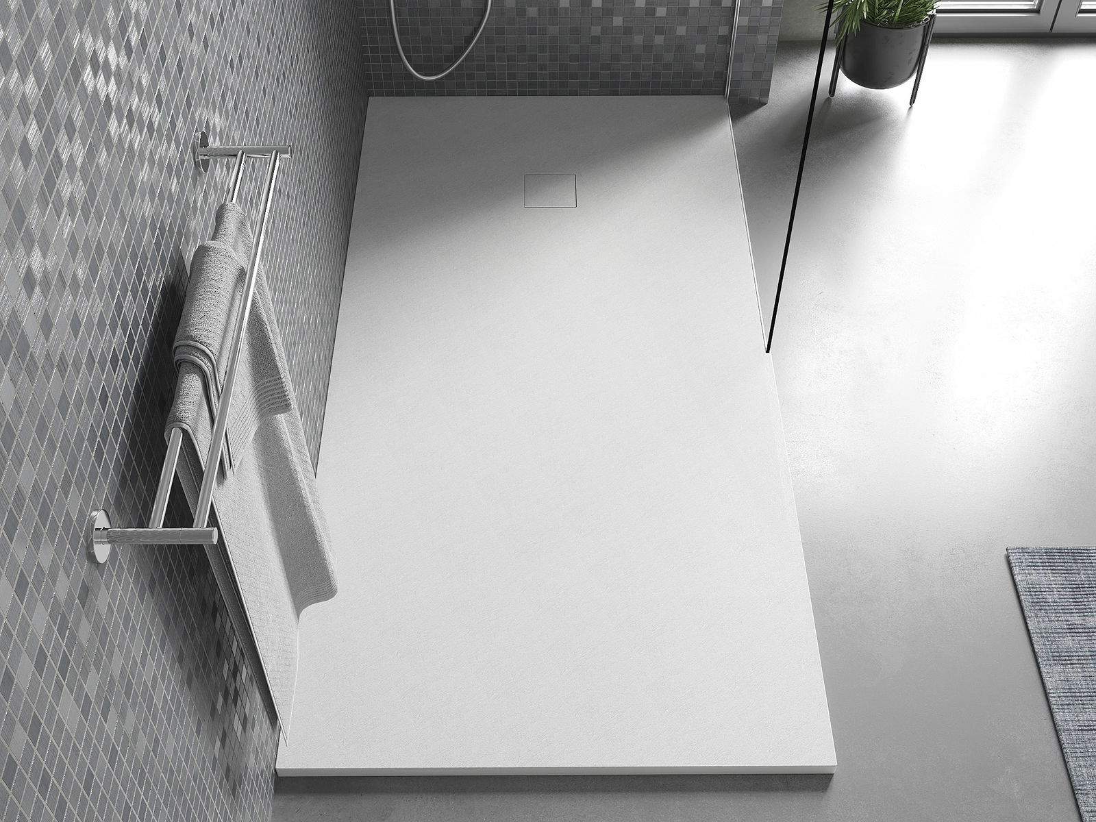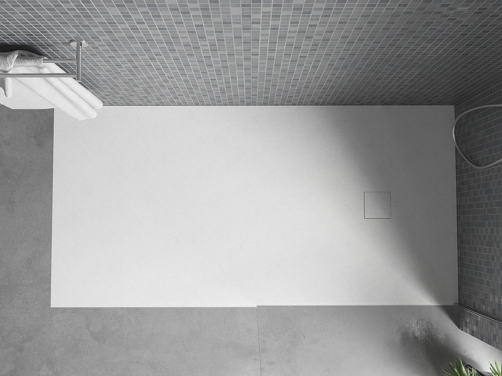 La surface du receveur de douche rappelle par sa structure la pierre. Elle constitue une combinaison exceptionnelle d'un aspect naturel et d'un aménagement intérieur moderne. Elle ajoute du caractère, souligne l'esthétique et l'élégance de la décoration de la salle de bains et séduit par sa forme.