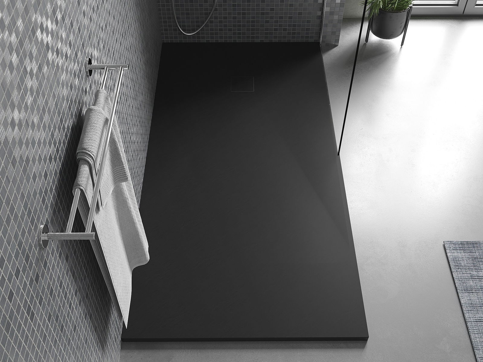 La surface du receveur de douche rappelle par sa structure la pierre. Elle constitue une combinaison exceptionnelle d'un aspect naturel et d'un aménagement intérieur moderne. Elle ajoute du caractère, souligne l'esthétique et l'élégance de la décoration de la salle de bains et séduit par sa forme.