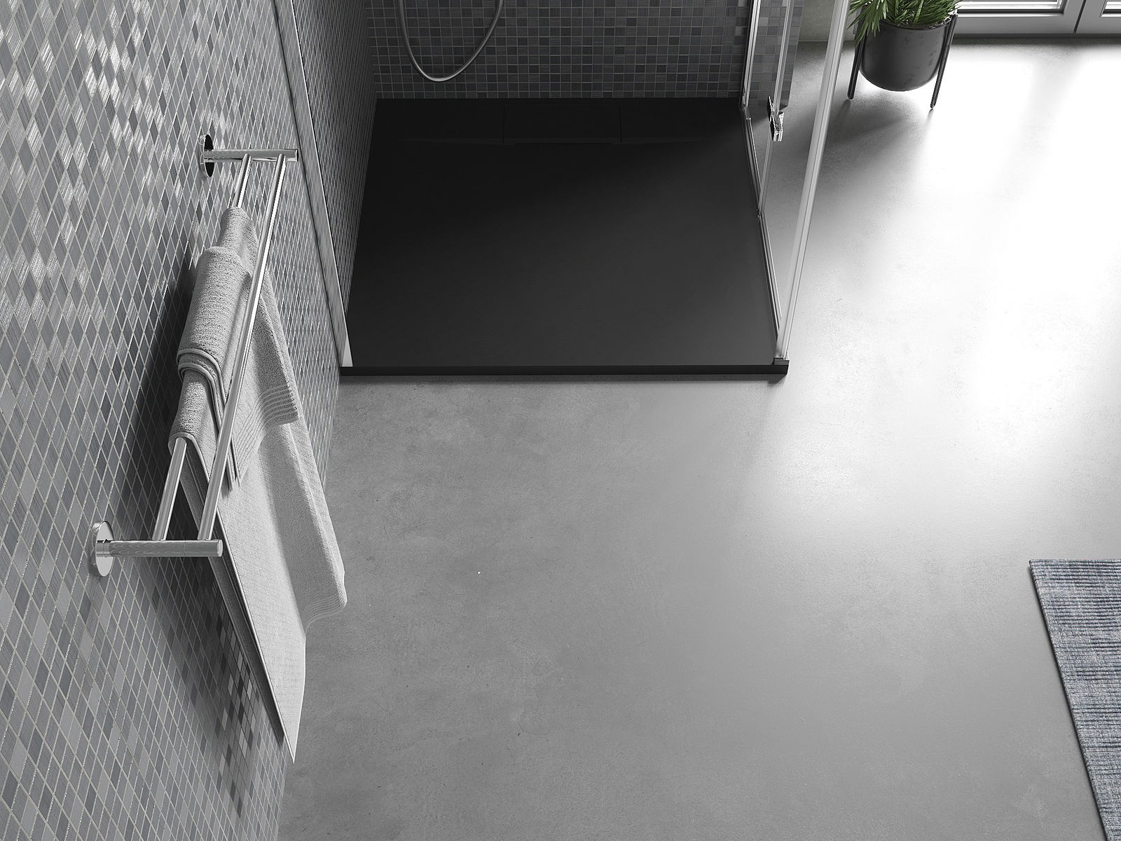 La surface du receveur de douche rappelle par sa structure la pierre. Elle constitue une combinaison exceptionnelle d'un aspect naturel et d'un aménagement intérieur moderne. Elle ajoute du caractère, souligne l'esthétique et l'élégance de la décoration de la salle de bains et séduit par sa forme.