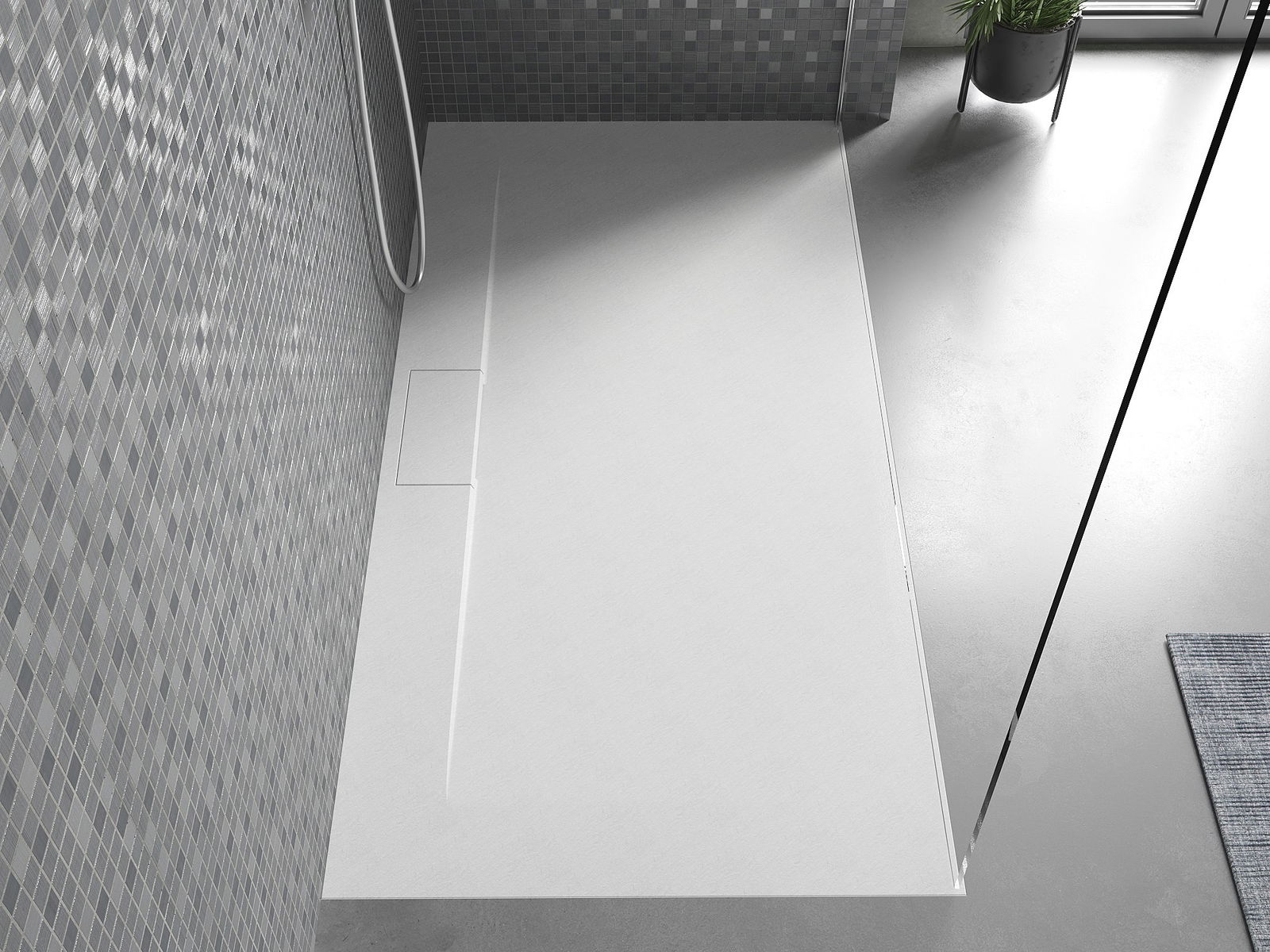 La surface du receveur de douche rappelle par sa structure la pierre. Elle constitue une combinaison exceptionnelle d'un aspect naturel et d'un aménagement intérieur moderne. Elle ajoute du caractère, souligne l'esthétique et l'élégance de la décoration de la salle de bains et séduit par sa forme.