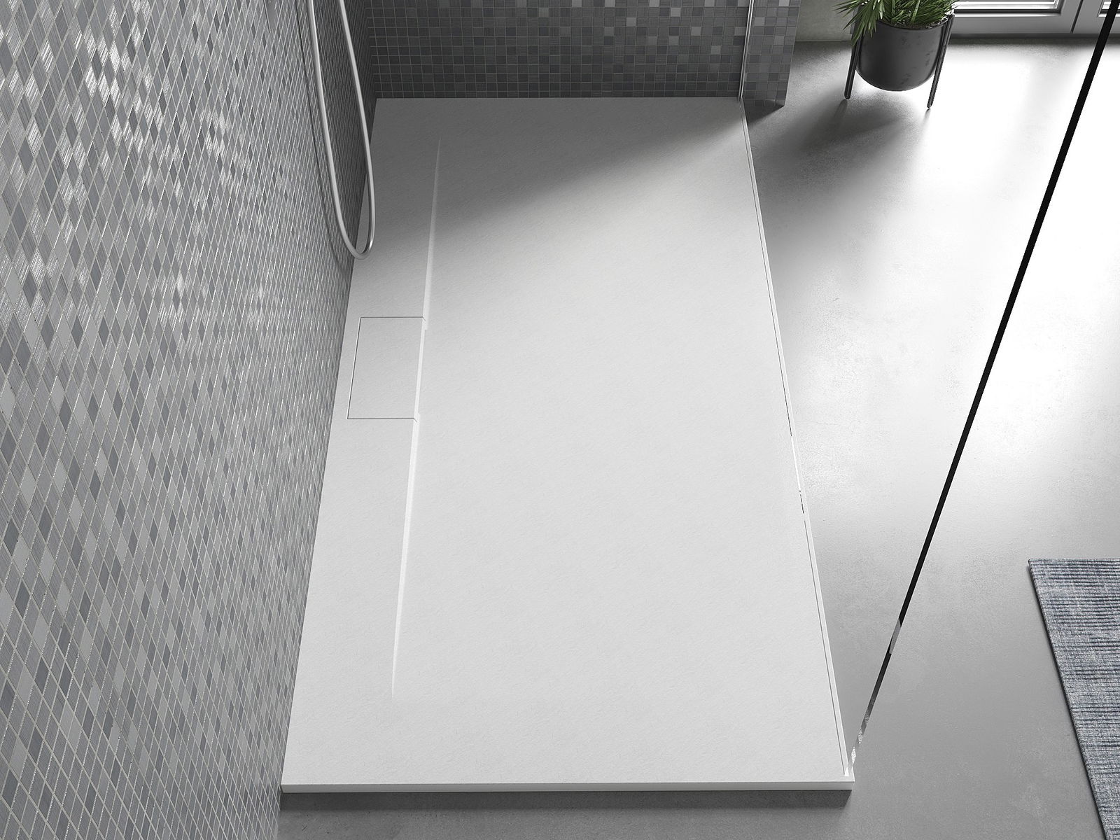 La surface du receveur de douche rappelle par sa structure la pierre. Elle constitue une combinaison exceptionnelle d'un aspect naturel et d'un aménagement intérieur moderne. Elle ajoute du caractère, souligne l'esthétique et l'élégance de la décoration de la salle de bains et séduit par sa forme.