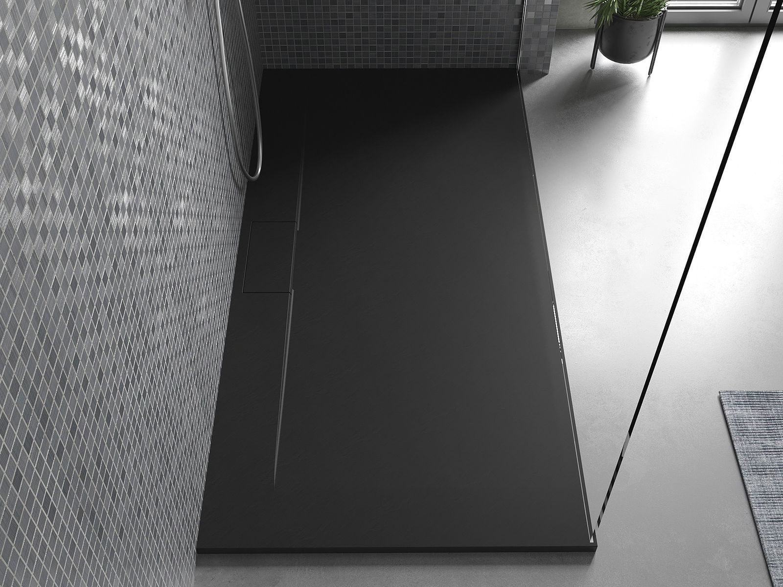 La surface du receveur de douche rappelle par sa structure la pierre. Elle constitue une combinaison exceptionnelle d'un aspect naturel et d'un aménagement intérieur moderne. Elle ajoute du caractère, souligne l'esthétique et l'élégance de la décoration de la salle de bains et séduit par sa forme.