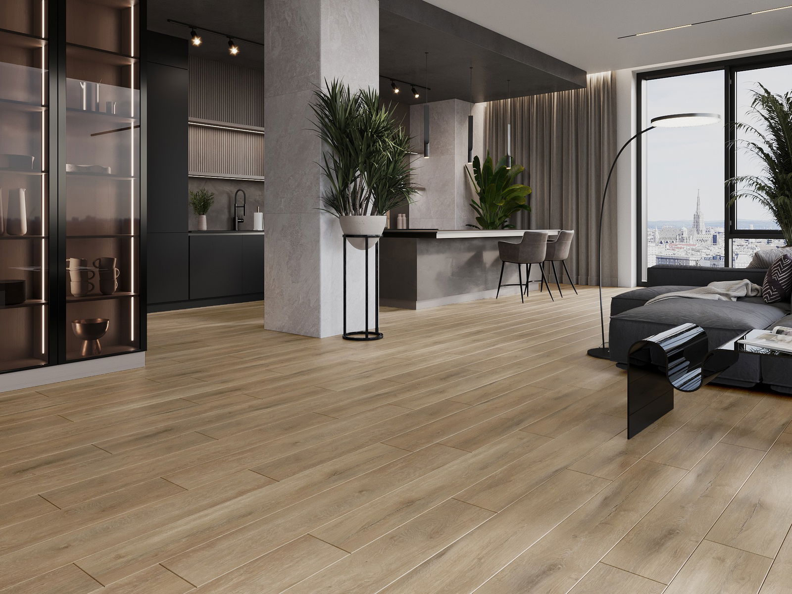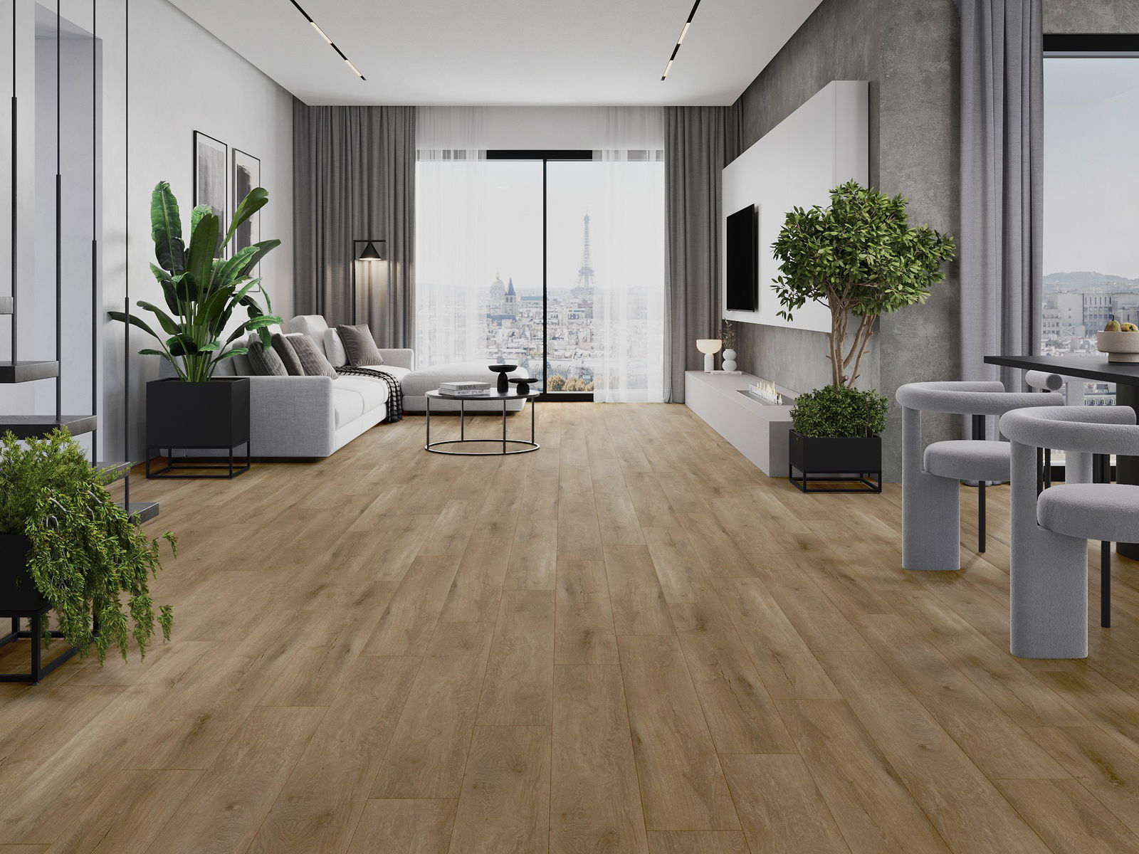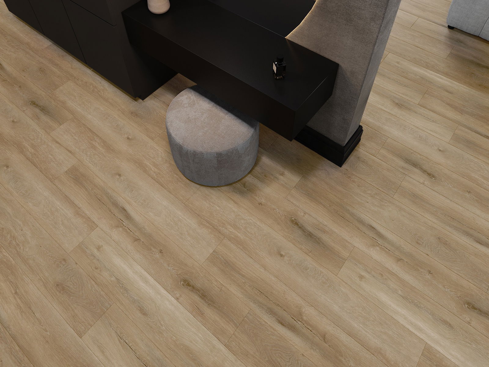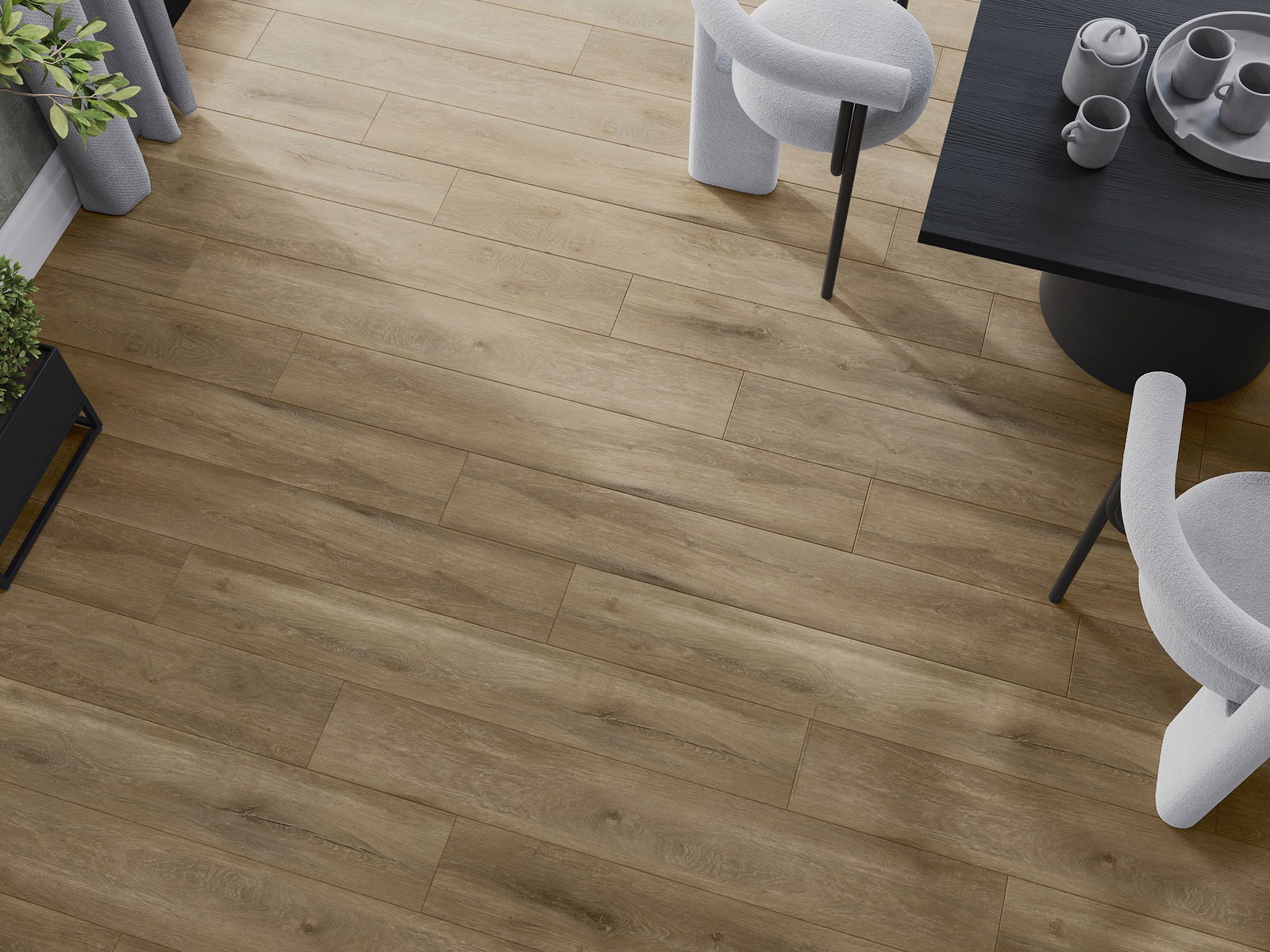 Les panneaux possèdent un joint à 4 côtés - chaque bord a été fraisée de manière à créer une jonction en forme de V après la pose. Ce design donne au sol une structure plus prononcée, ajoutant profondeur et caractère esthétique. Cet effet est particulièrement apprécié dans les aménagements modernes, où les détails soulignent l'aspect unique de l'intérieur.