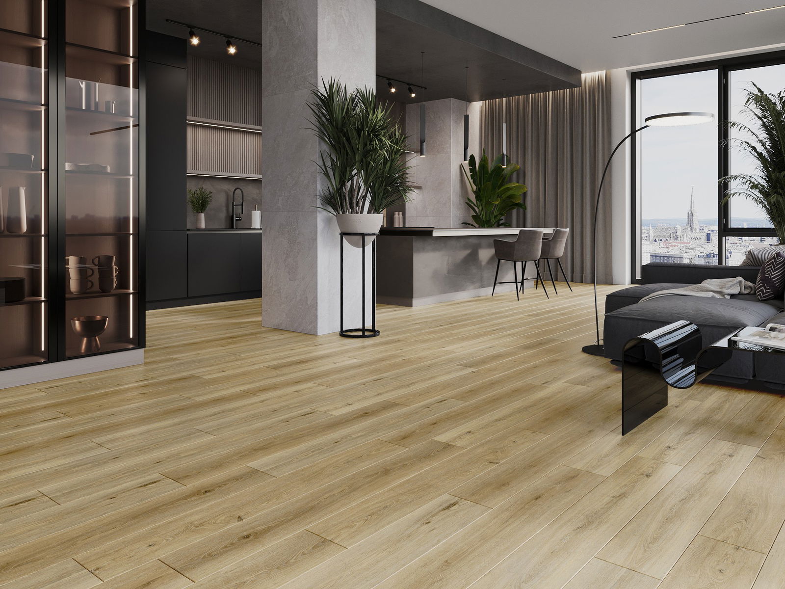 Les panneaux possèdent un joint à 4 côtés - chaque bord a été fraisée de manière à créer une jonction en forme de V après la pose. Ce design donne au sol une structure plus prononcée, ajoutant profondeur et caractère esthétique. Cet effet est particulièrement apprécié dans les aménagements modernes, où les détails soulignent l'aspect unique de l'intérieur.