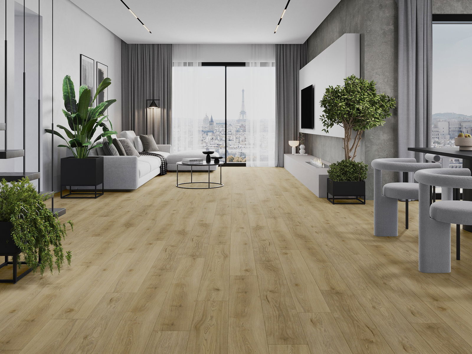 Les panneaux possèdent un joint à 4 côtés - chaque bord a été fraisée de manière à créer une jonction en forme de V après la pose. Ce design donne au sol une structure plus prononcée, ajoutant profondeur et caractère esthétique. Cet effet est particulièrement apprécié dans les aménagements modernes, où les détails soulignent l'aspect unique de l'intérieur.