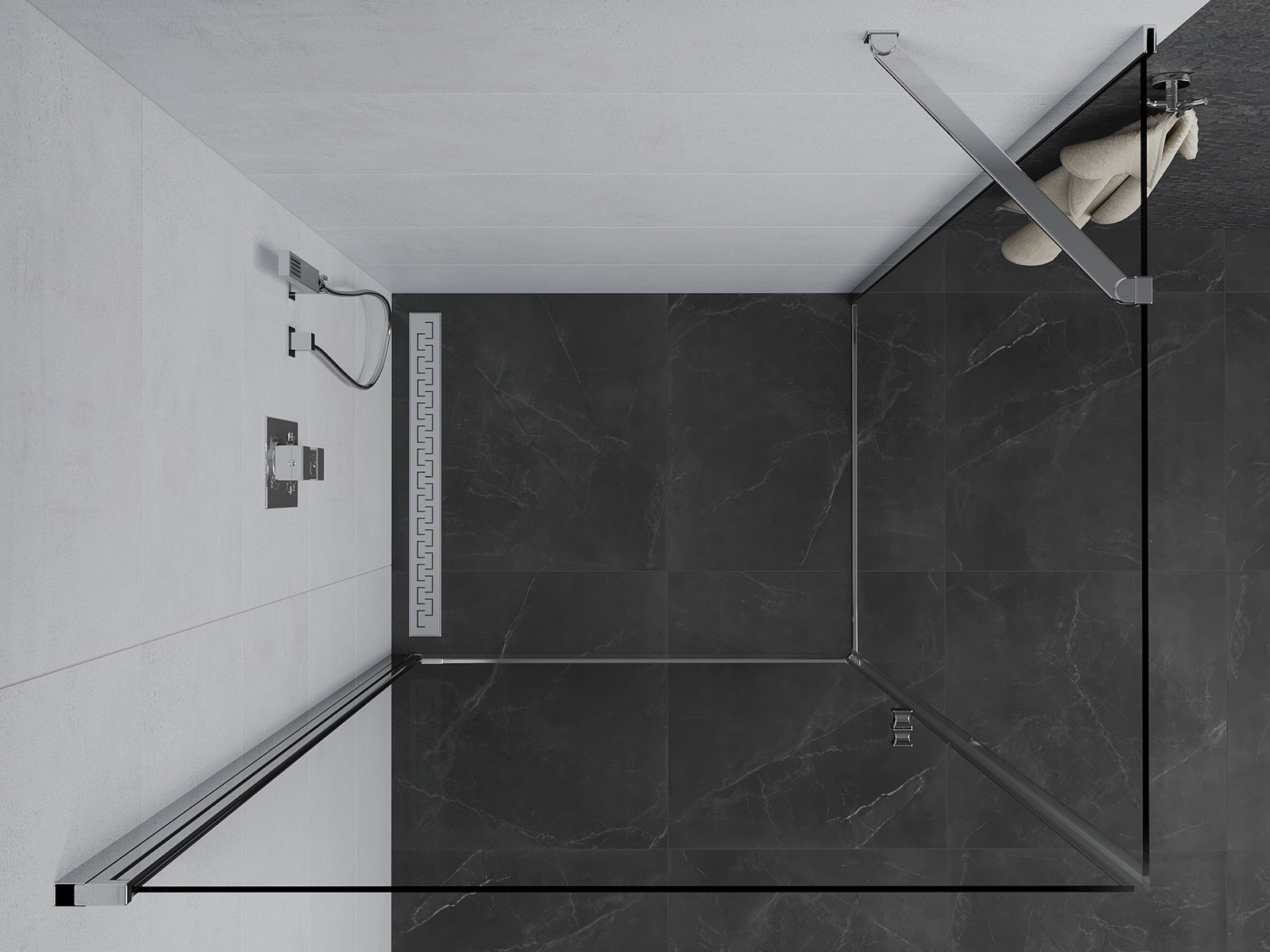 La poignée pratique et confortable est fabriquée en métal durable et résistant. Sa forme élégante, associée à une finition assortie à la couleur des profilés, confère à l'ensemble un style moderne et élégant, soulignant l'esthétique de chaque salle de bains.