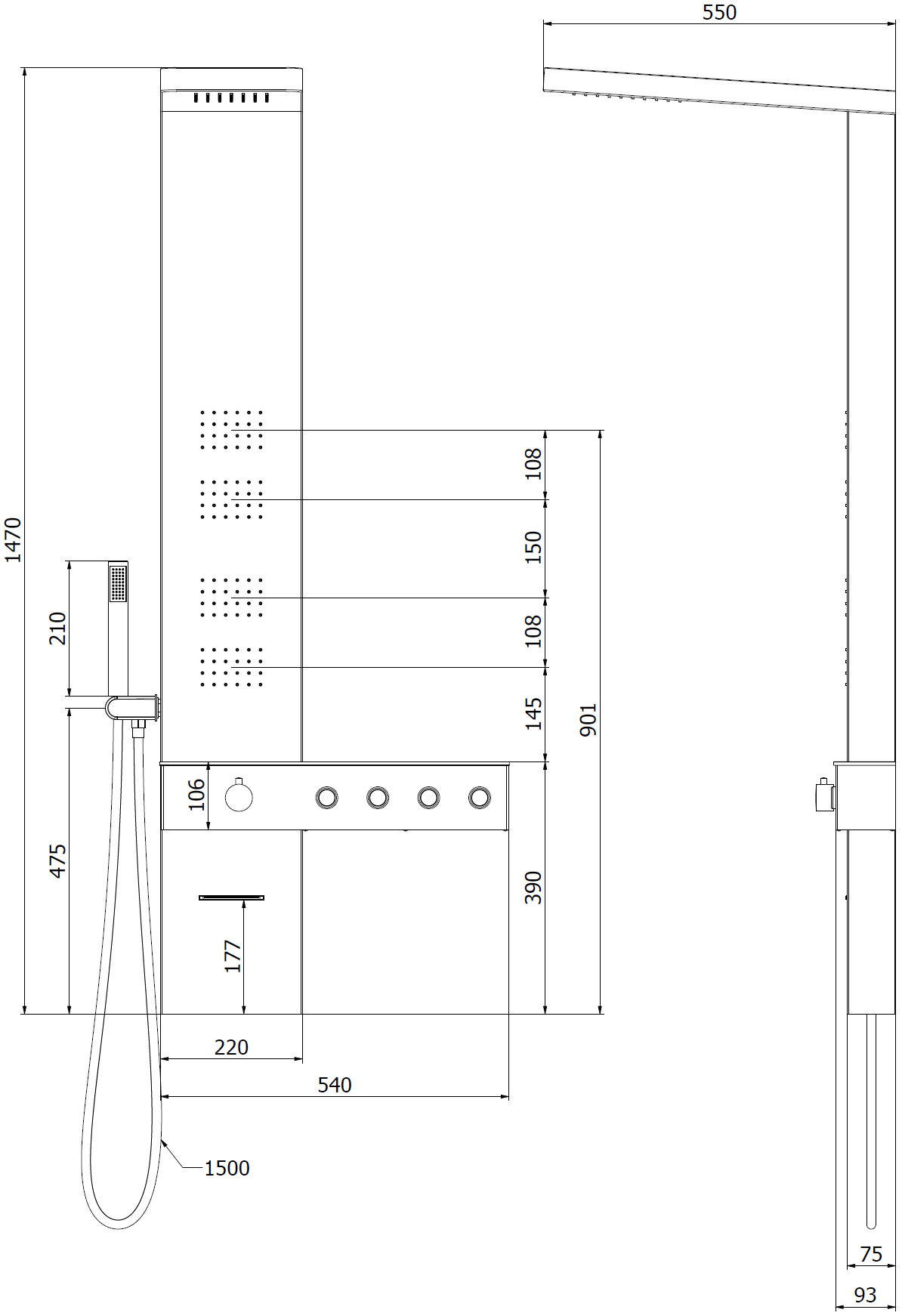 Un flux d'eau standard imitant la pluie naturelle. Les gouttes coulent uniformément sur le corps, l'enveloppant d'une agréable sensation d'hydratation et permettant de plonger dans une expérience relaxante et apaisante pour les sens lors du bain quotidien.