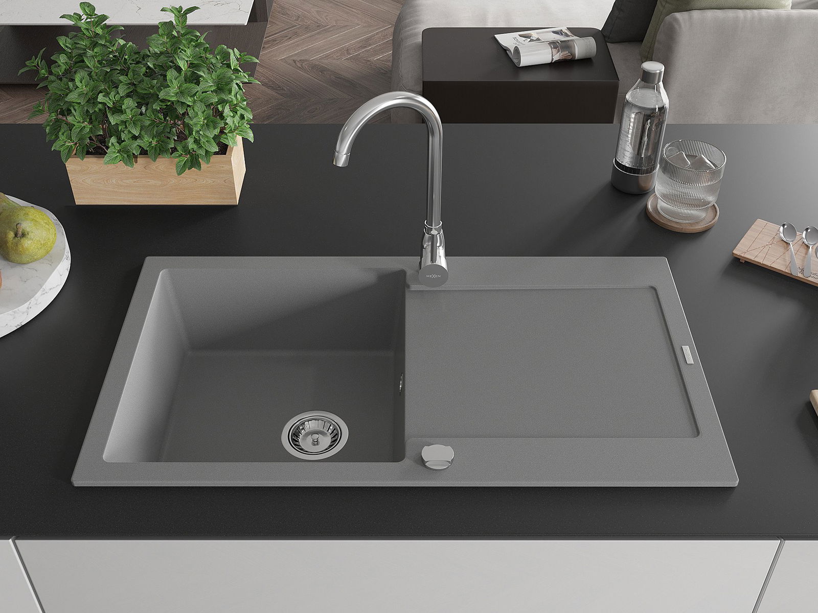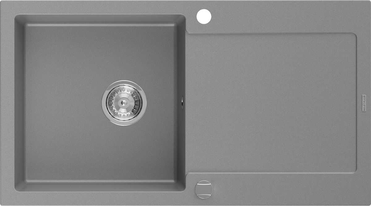 Mexen Leo évier en granit 1 bac avec égouttoir 900 x 500 mm, gris, siphon chrome - 6501901010-71