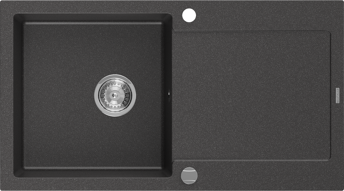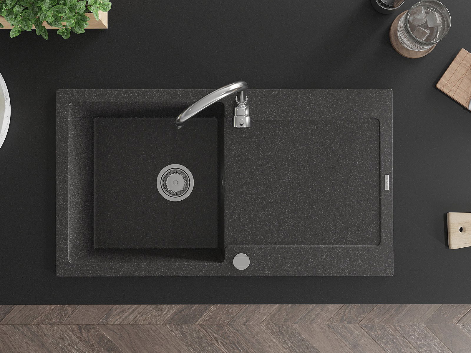 Mexen Leo évier en granit 1 bac avec égouttoir 900 x 500 mm, noir moucheté, siphon chromé - 6501901010-76