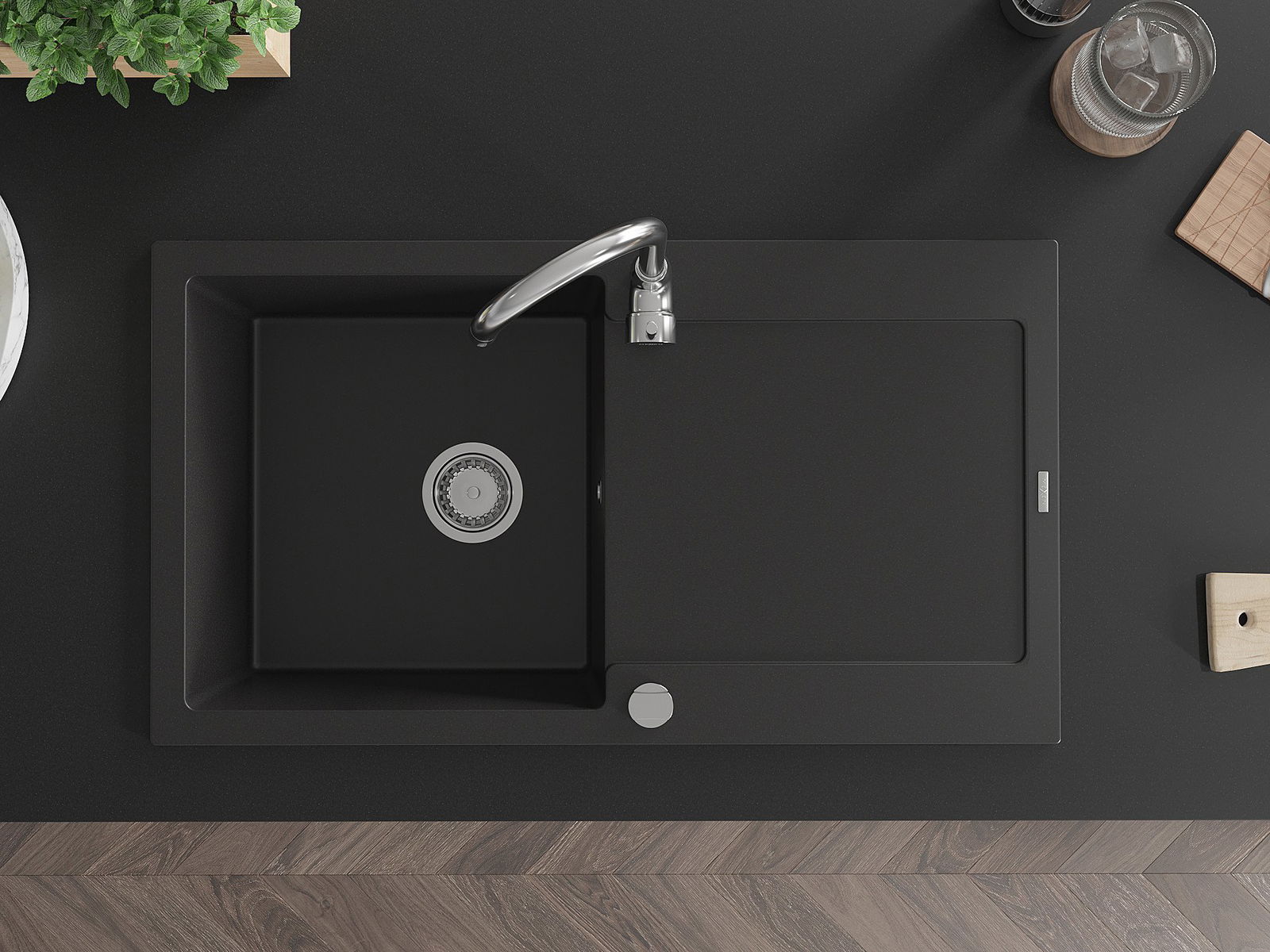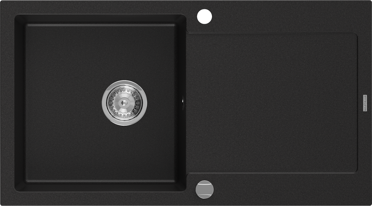 Mexen Leo évier en granit 1 bac avec égouttoir 900 x 500 mm, noir, siphon chrome - 6501901010-77