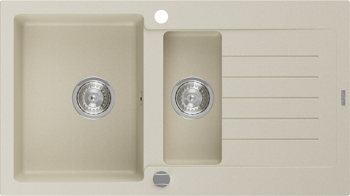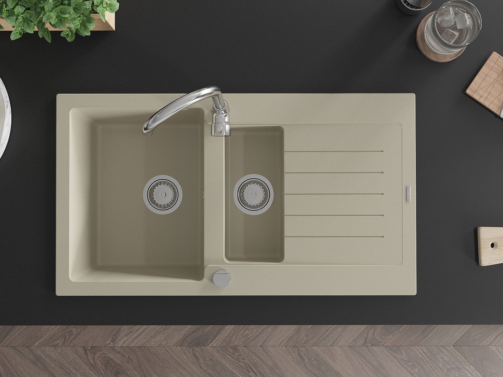 Mexen Matias évier en granit 1,5 bac avec égouttoir 900 x 505 mm, beige, siphon chromé - 6502901505-69