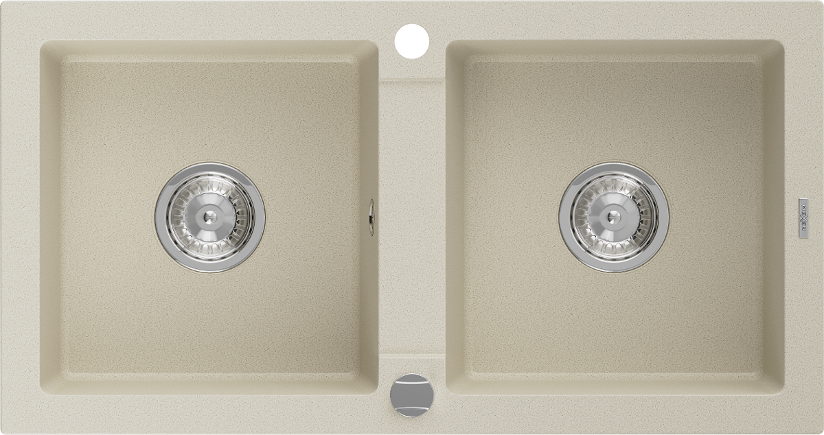 Mexen Mario évier en granit à 2 bacs 820 x 436 mm, beige, siphon chromé - 6504822000-69