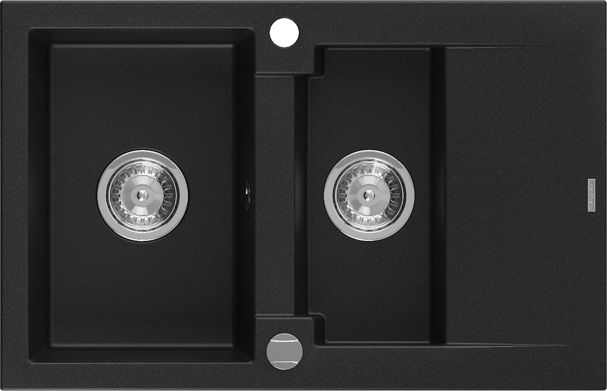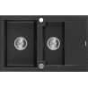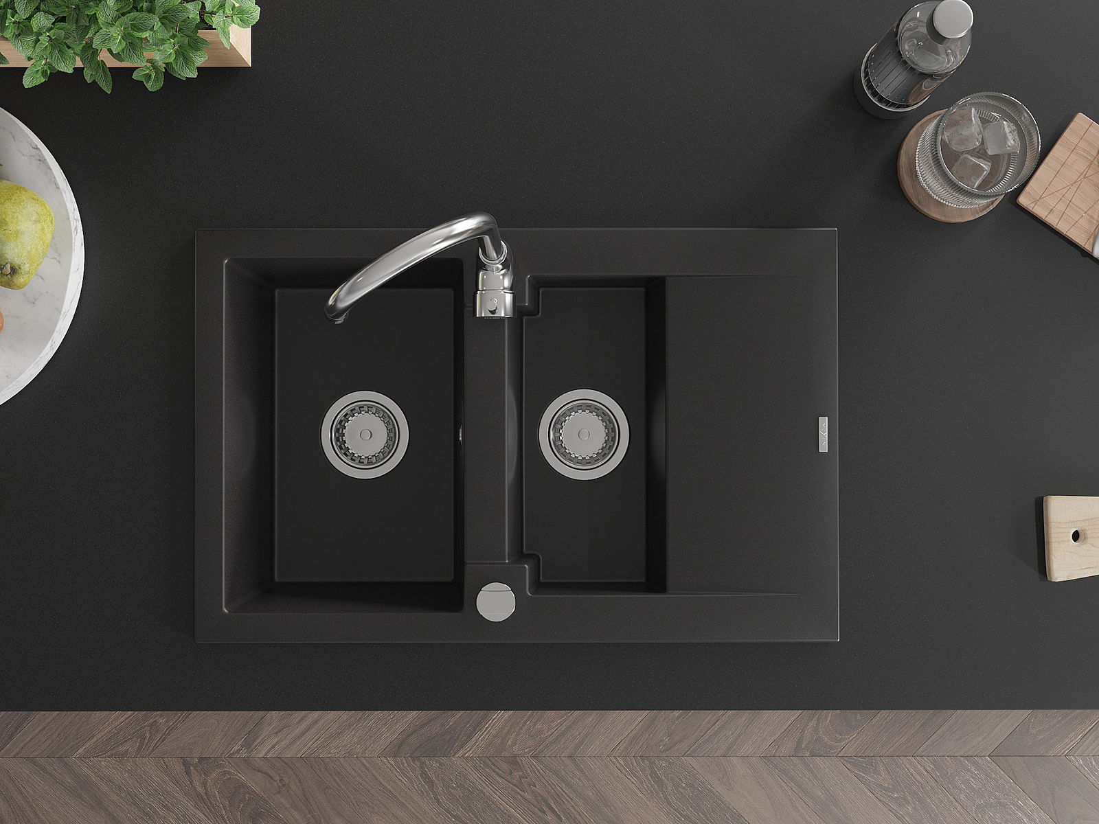 Mexen Gaspar évier en granit 1,5 bac avec égouttoir 737 x 475 mm, noir, siphon chromé - 6507731505-77