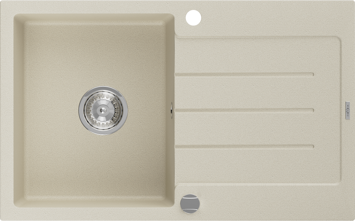 Mexen Bruno évier en granit 1 bac avec égouttoir 795 x 495 mm, beige, siphon chromé - 6513791010-69