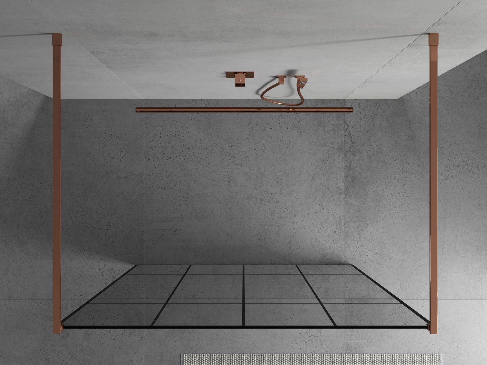 Mexen Kioto paroi de douche autoportante 150 x 200 cm, grille noire 8 mm, or rose - 800-150-002-60-77