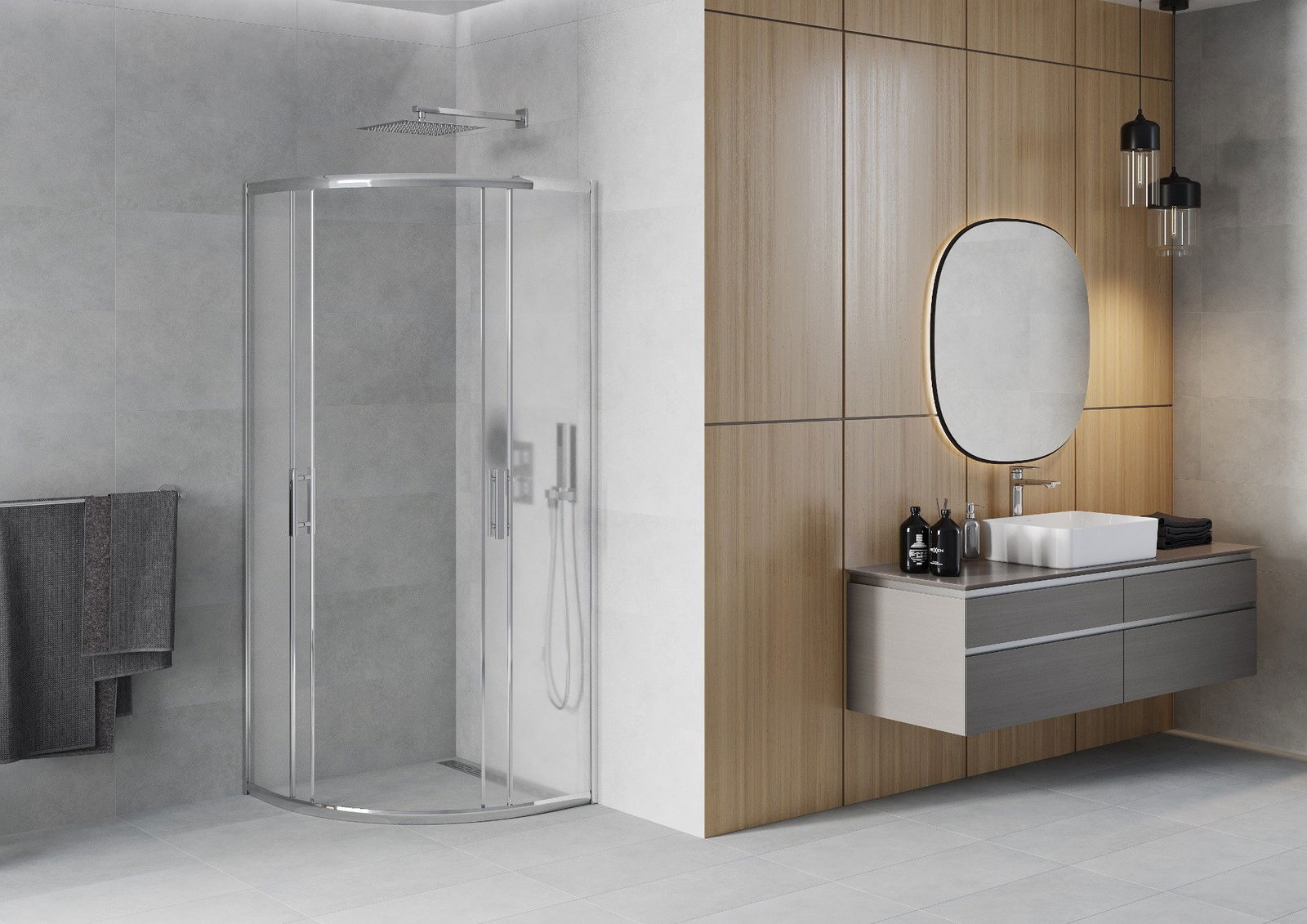 Les portes coulissantes se déplacent sur des rails spéciaux et ne nécessitent pas d'espace supplémentaire pour être ouvertes, ce qui les rend idéales pour les petites salles de bains. Grâce à des roulettes doubles en plastique durable, leur mouvement est fluide.