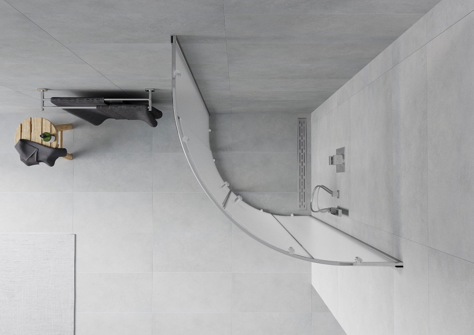 Le produit peut être installé sur un receveur de douche ou directement au sol, selon vos besoins. Son montage universel permet de l'adapter à différents types de salles de bains et configurations d'espace.