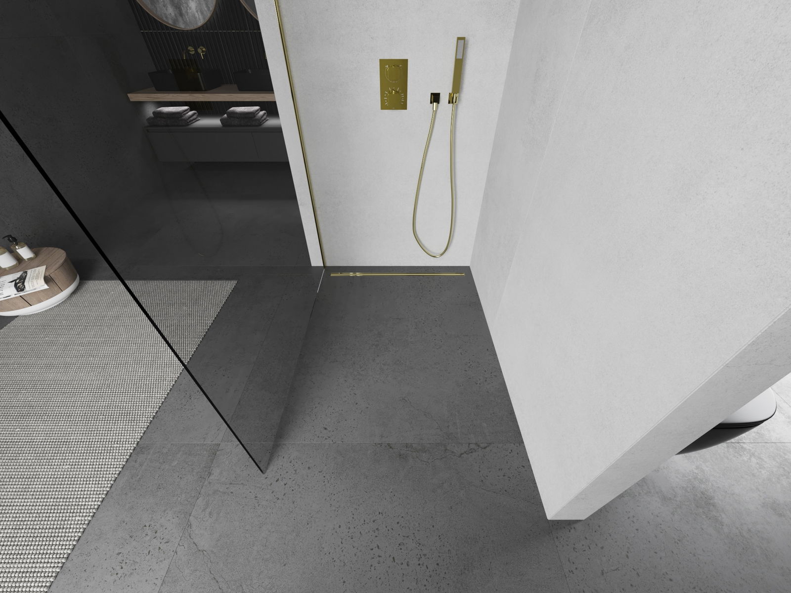 Mexen Kioto paroi de douche Walk-in 145 x 200 cm, transparent 8 mm, dorée - 800-145-101-50-00