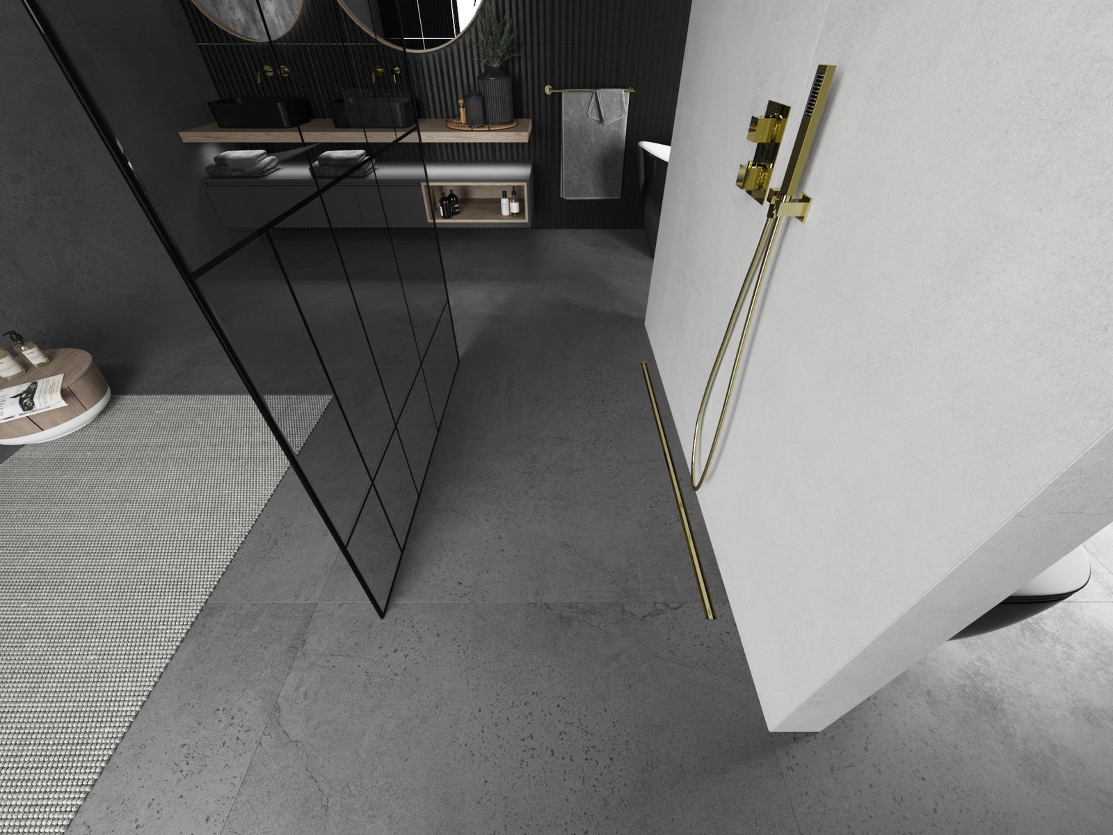 Mexen Kioto paroi de douche autoportante 140 x 200 cm, motif noir 8 mm, or brossé - 800-140-002-55-78