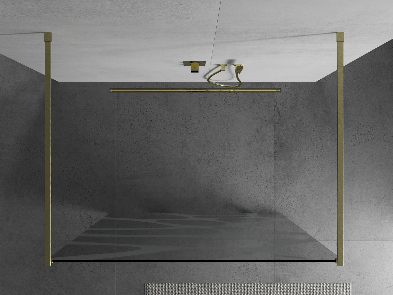 Mexen Kioto paroi de douche autoportante 140 x 200 cm, ondulation blanche 8 mm, or brossé - 800-140-002-55-97